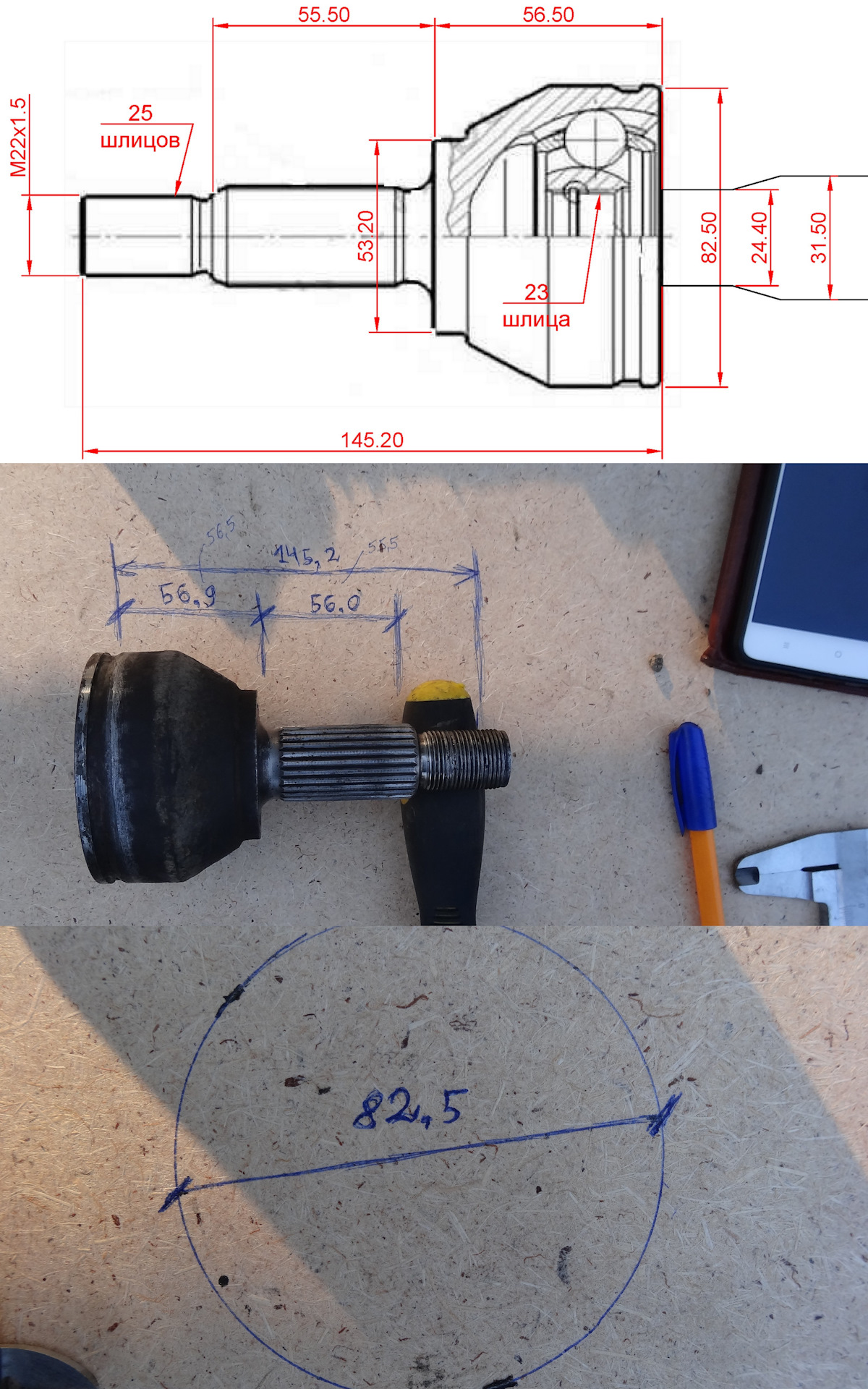 Часть 3. Непосредственно сам процесс замера основных размеров существующего ШРУС