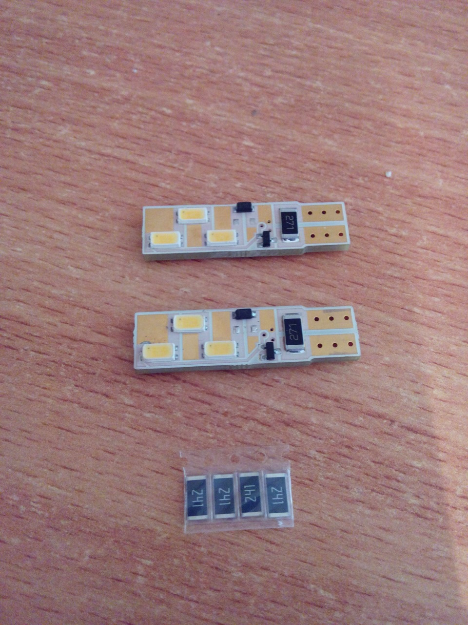 Судя по фото-светодиоды с обманкой. Менять надо соблюдая полярность и обязательно через выключение зажигания и вытаскивания ключа (то есть, если не попал в полярность-выключить зажигание и вытащить ключ, поменять полярность и снова пробовать). Как то так. Я так делал.