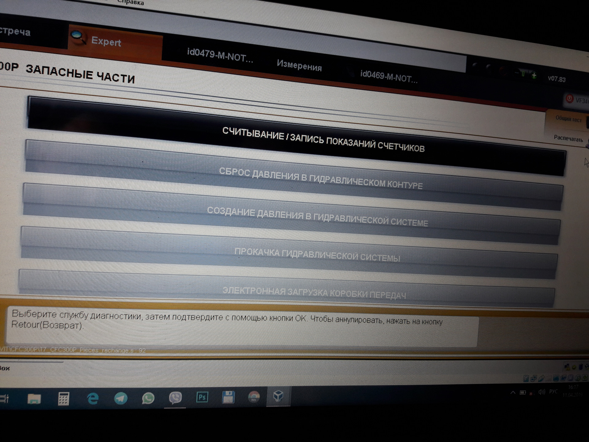Первым делом подключаемся Лексией и производим Сброс давления в системе.