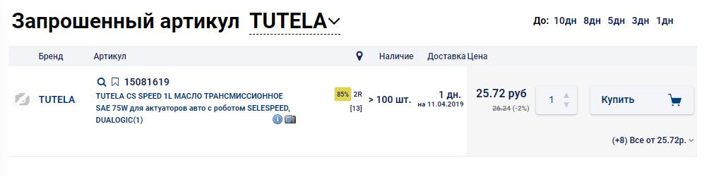 Масло для замены выбрали, по совету Service Box: TUTELA CS SPEED 1L Масло трансмиссионное SAE 75W для актуаторов авто с роботом Selespeed, Dualogic (номерок: 15081619).