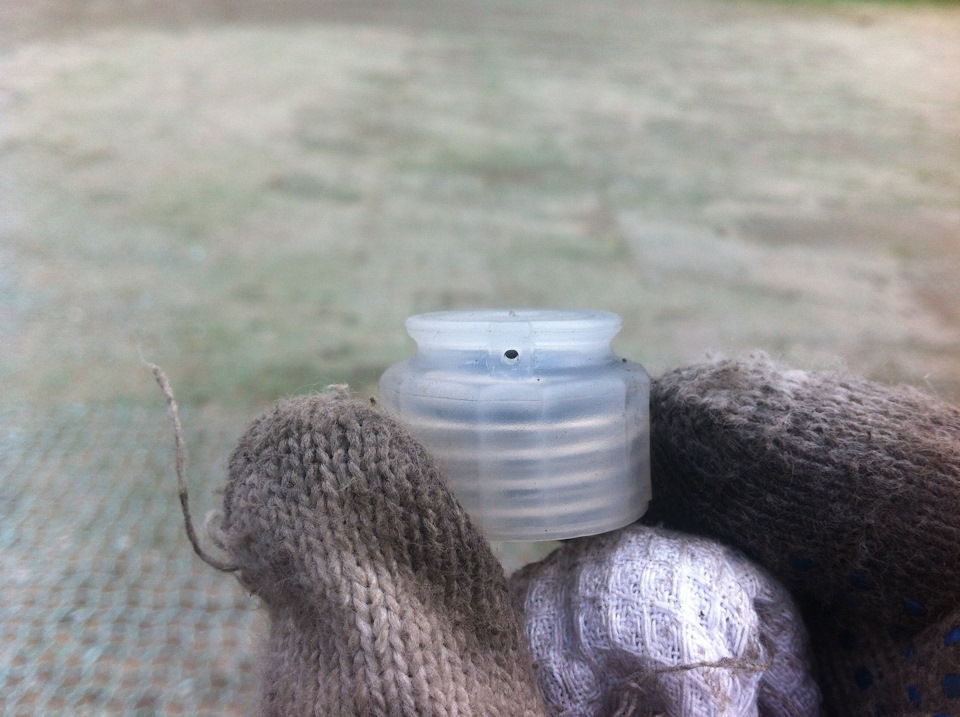 Беглый осмотр выявил течь, только из-под крышки заливного отверстия бачка, все же соединения трубок были сухими. Забегая вперёд, оказалось, что в этой пробке есть отверстие для сообщения с атмосферой. А расположено оно не как у всех, сверху, а сбоку крышки: