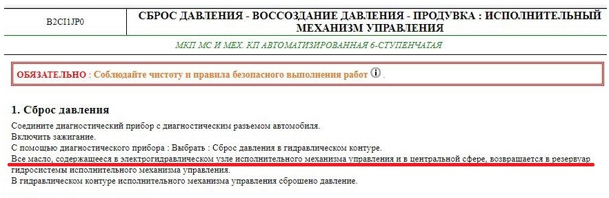 И еще один момент не пойму, в пункте "Сброс давления" пишет что "все масло содержащееся в электрогидравлическом узле исполнительного механизма управления и в центральной сфере, возвращается в резервуар" — тоесть все масло с системы уходит в бачок, а вытянуть получается только примерно 500 мл с него или как?