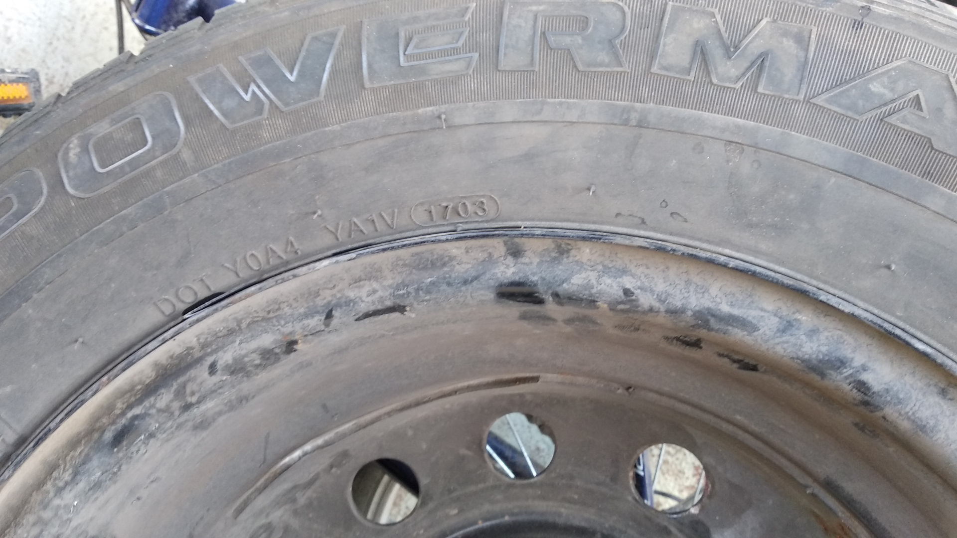 А ну еще… Тут недавно мерялись запасками. Так у меня еще родная. KUMHO POWERMAX 17 неделя 2003 г) Состояние как новая)