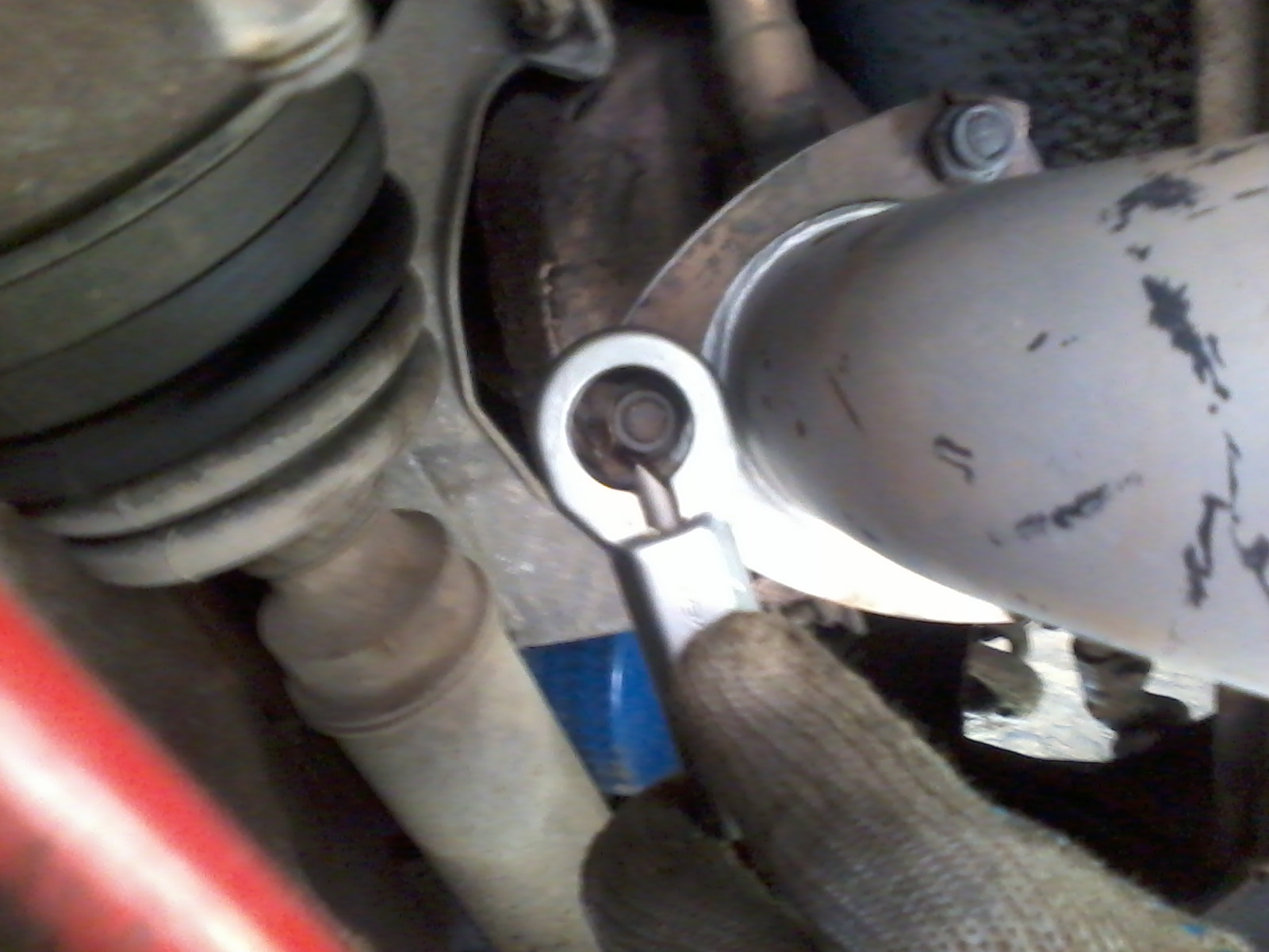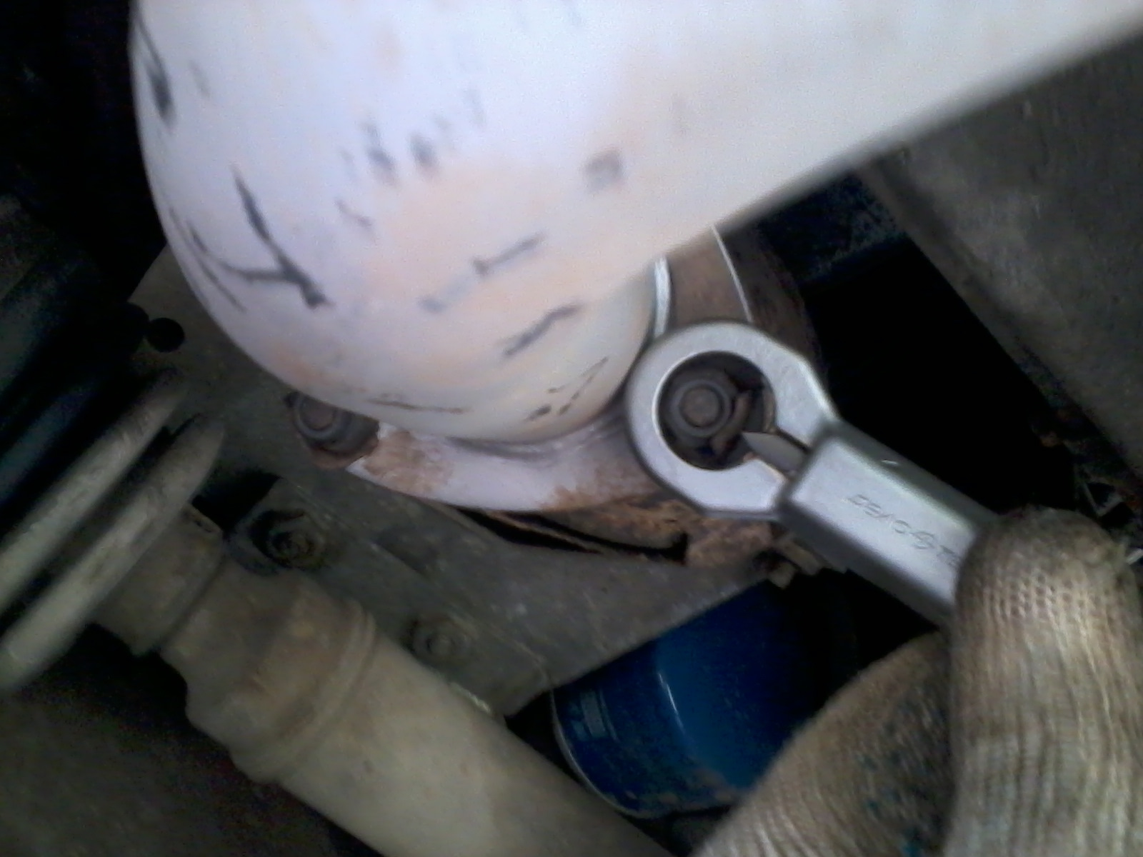 Пока соединял хомутом резонатор и основной глушитель, разбередил последний, и он так же начал довольно громко попёрдывать на стыке входной трубы и банки. Придётся и его заменить вскоре.