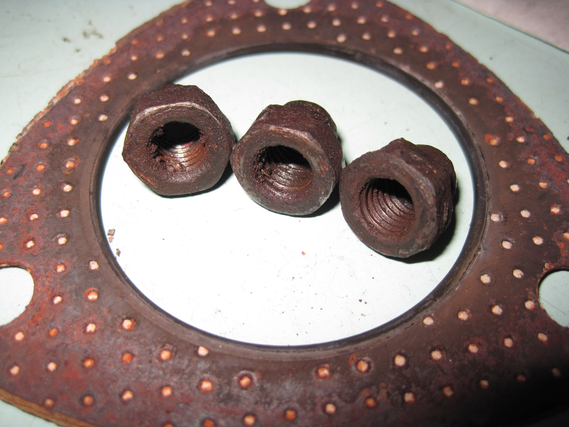 Старые гайки и прокладка фланца.