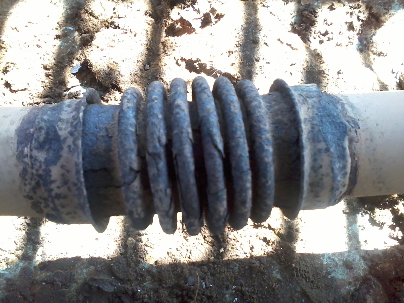 Вот гофра на сей момент. Треснула и пердела. Потом переломил её окончательно. На удивление, внутренняя оплётка уцелела.