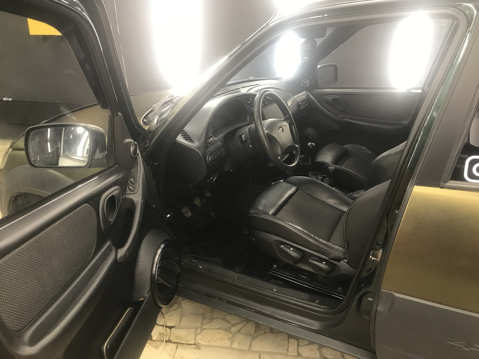 Чтоб не заморачиваться с ГИБДД поставил водительское сиденье от новой Шнивы, с подлокотником и лифтом. Визуально — одного раскраса. По ощущениям — выше штатного, плотнее гораздо, подлокотник удобный, подогрев комфортнее. А самое главное — "правильные" шильдики :)