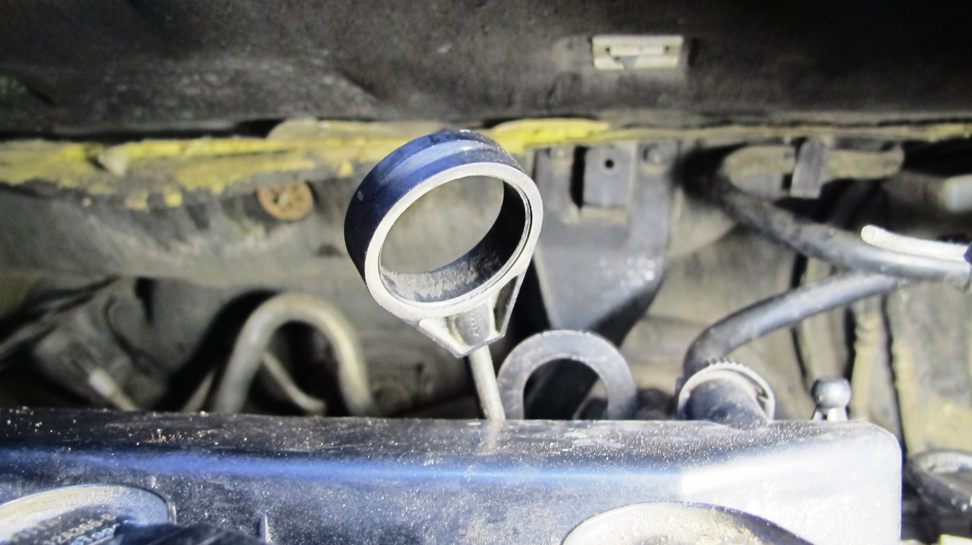 Для замены я удалил только корпус воздушного фильтра, этого более чем достаточно. Затем отсоединил трос от кронштейна, а с шарика он сам слетел, и вытащил его наверх.