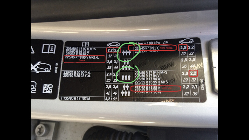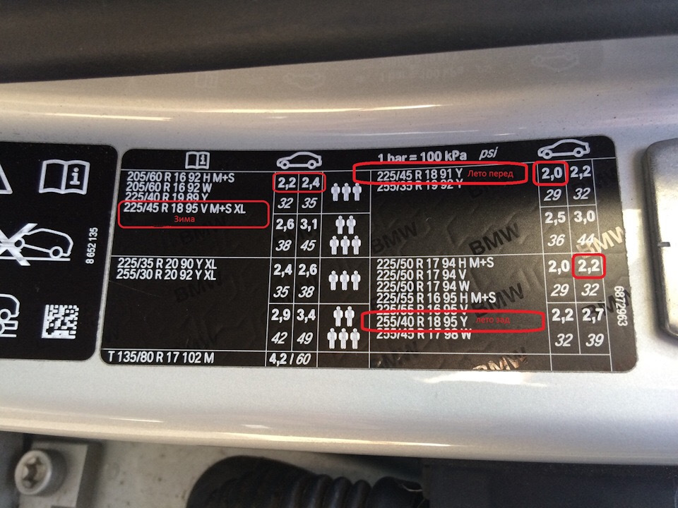 Давление в шинах – традиционно спереди 2.0, сзади 2.2.