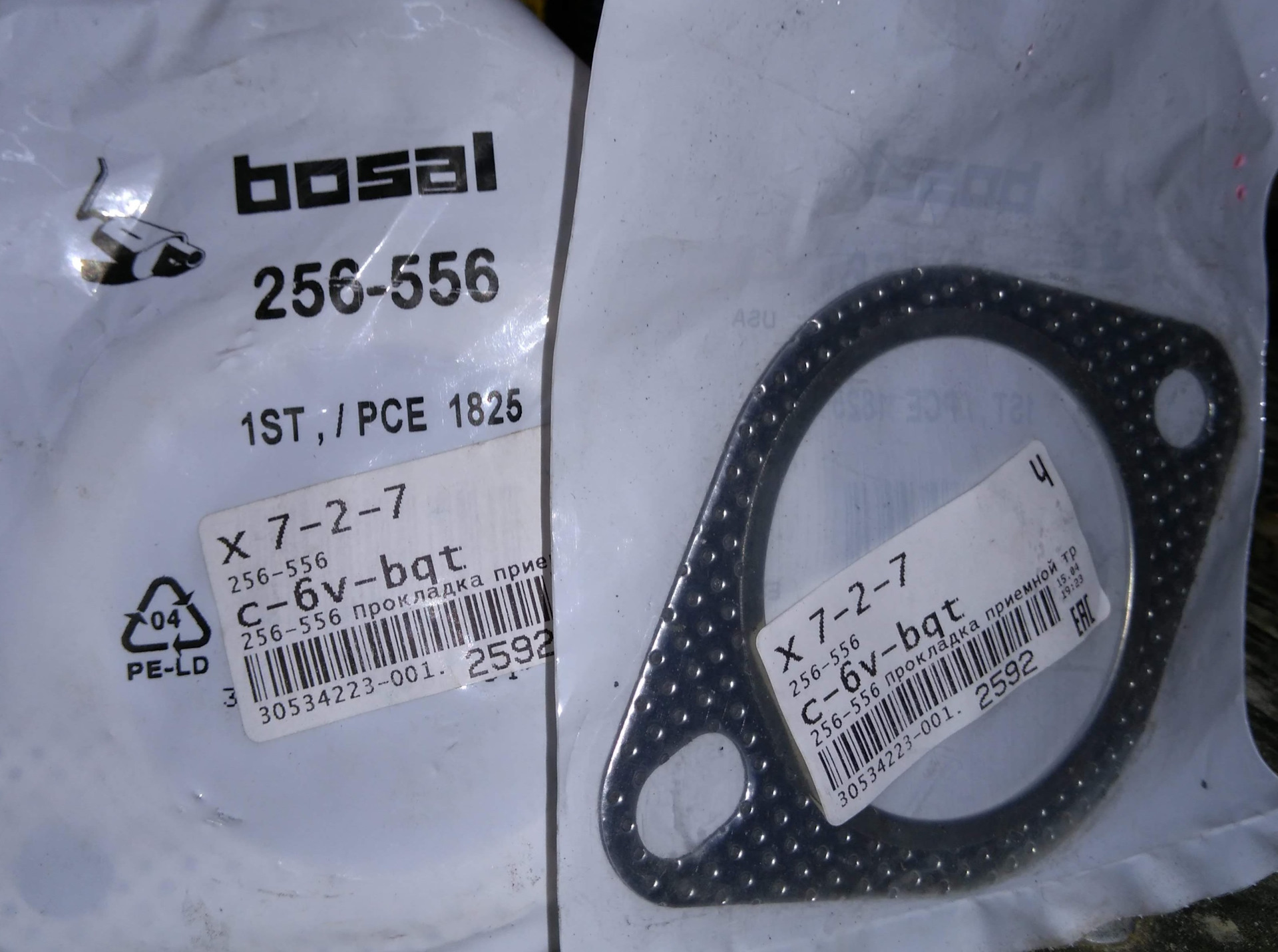 Прокладки взял BOSAL 256556 — 2 шт. По каталогам идут 2 разные прокладки на передний и задний фланец, но можно брать одинаковые.