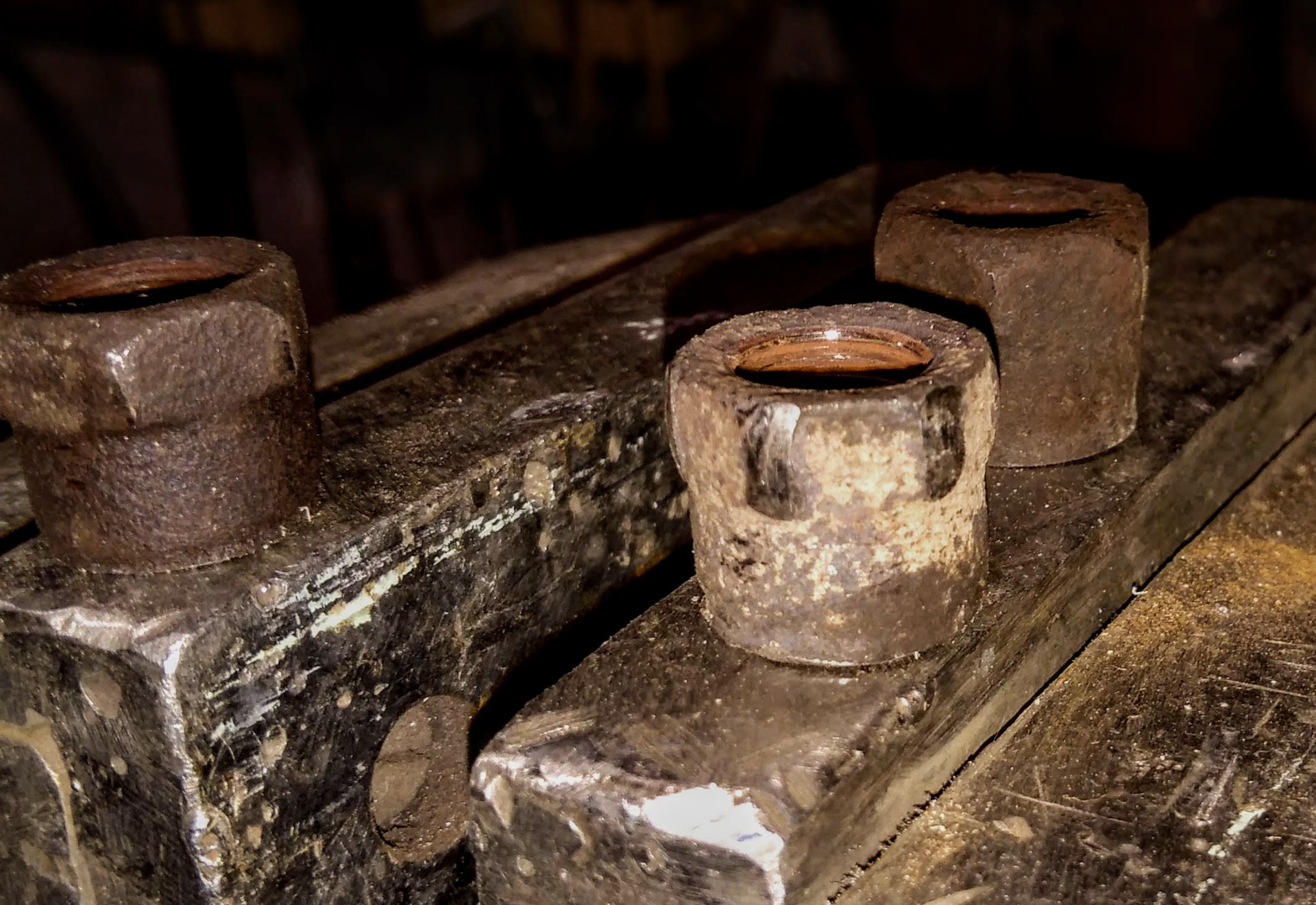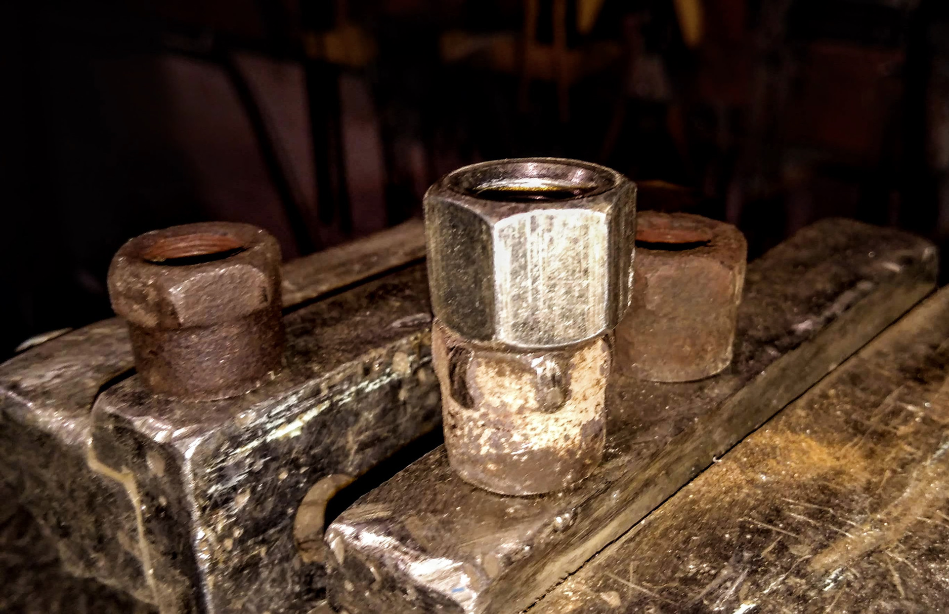 Гайки хотел подобрать медные, но не было в магазине в нужной размерности. Купил стальные. В отличие от родных гаек, шестигранник у них идет на всю высоту, что здорово снижает шансы сорвать ее при откручивании головкой.
