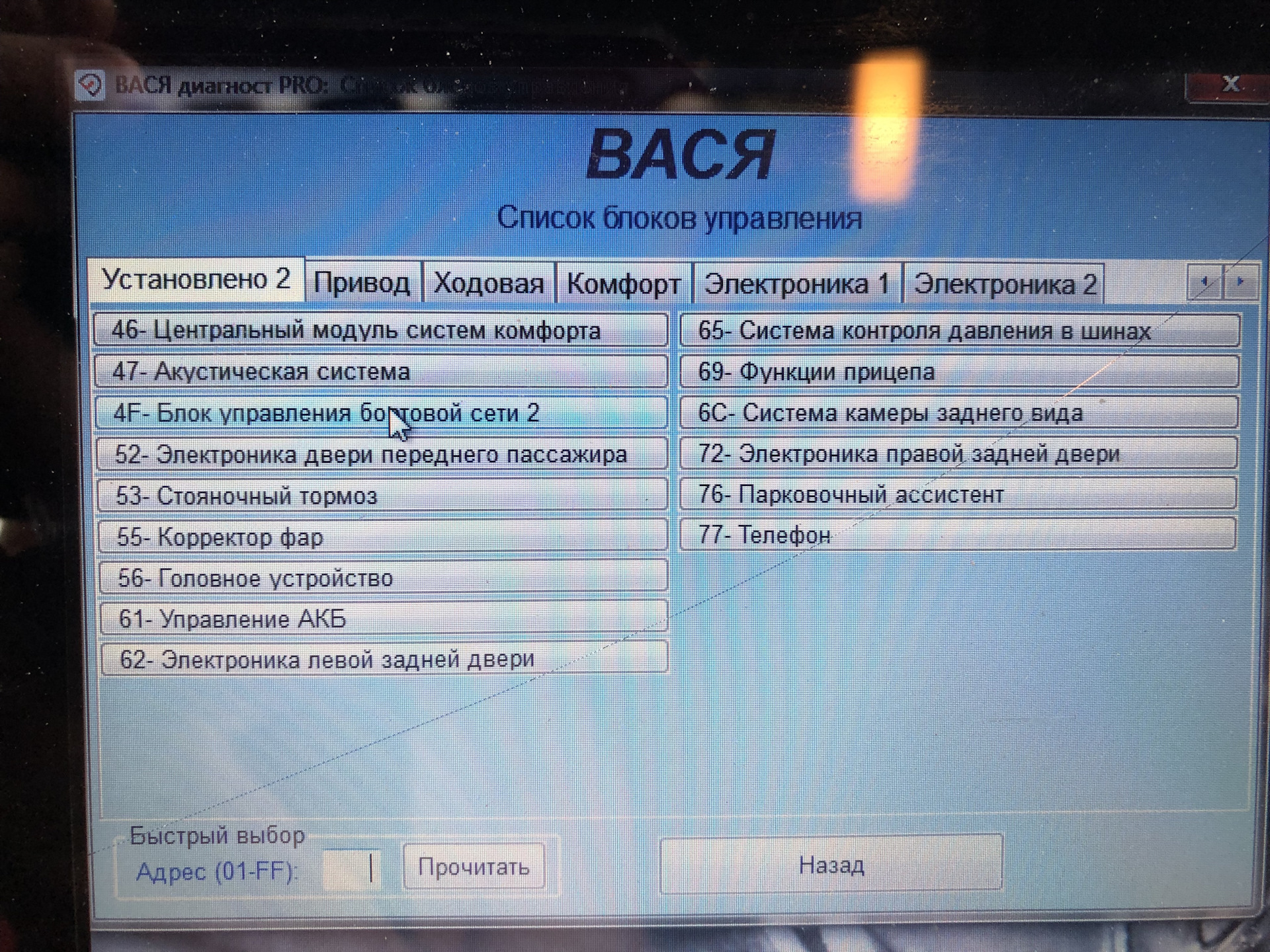 2 — Выбираем: 4F (Блок управления бортовой сети 2)