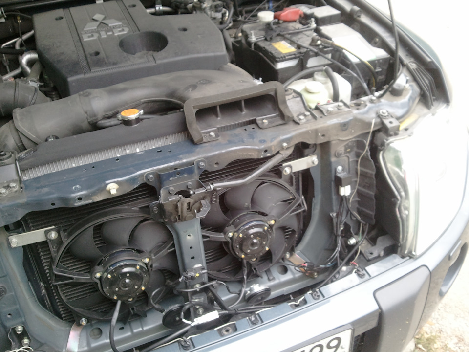 Фото не самое удачное, но другое найти не смог. Смысл в любом случае понятен: на дизелях ещё установлен радиатор Акпп, на бензинах не на всех. В общем, эффективность второго вентилятора с такой конструкцией сомнительна.