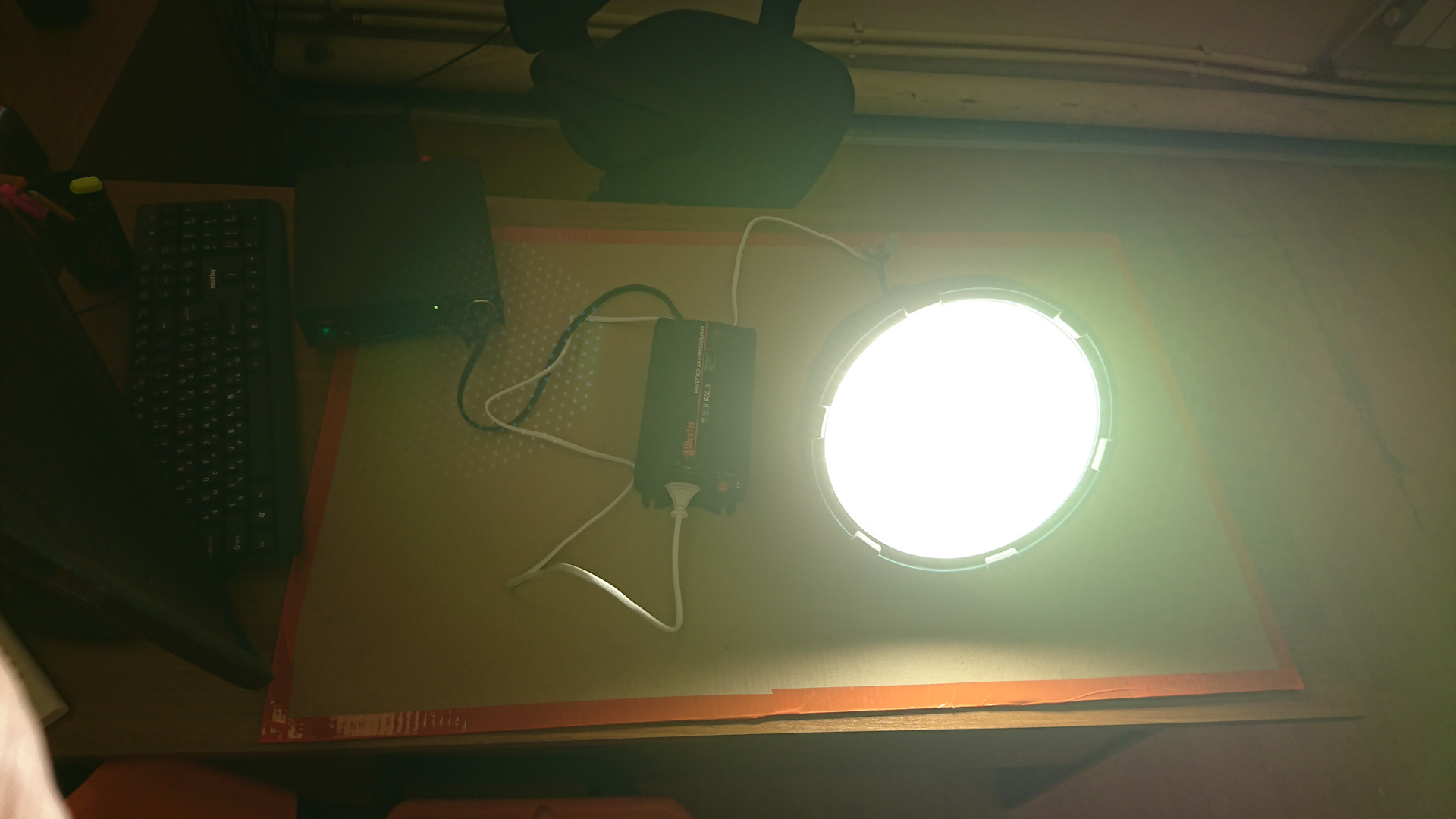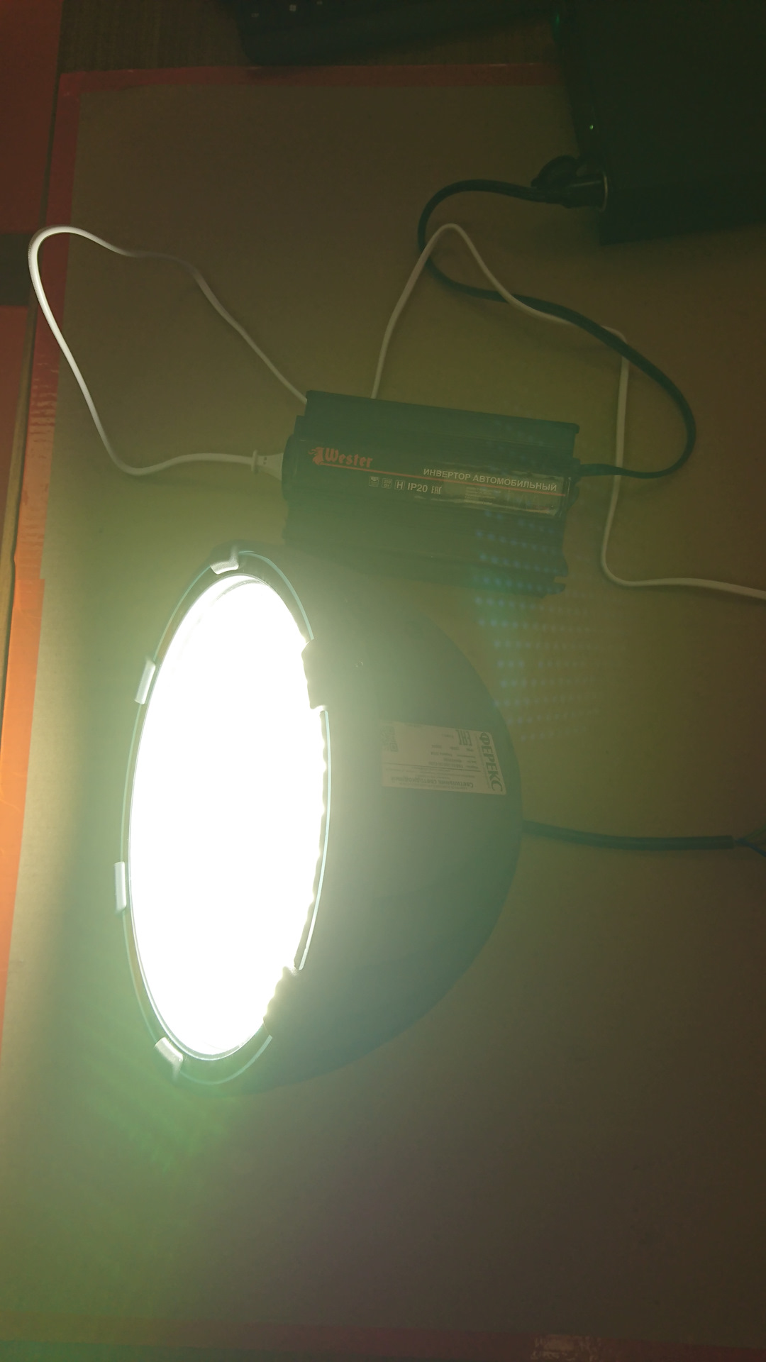 Великолепный тест. Всё понятно. Инвертор работает, светильник от инвертора тоже работает.