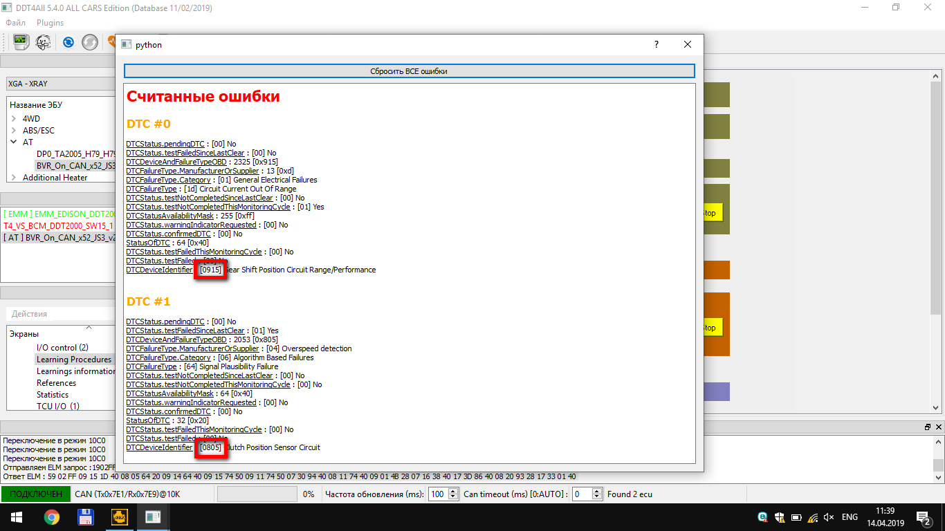 Так же у меня 2 ошибки никак не стираются. Это 0915, 0911, иногда 0805. Через OpenDiagMobile эти ошибки не отображаются(Android версия, надо покупать модуль для АМТ, на момент покупки стоило 100 рублей, инструкция по покупке в самой программе). Так что думаю что это нюансы, не влияющие на работу.