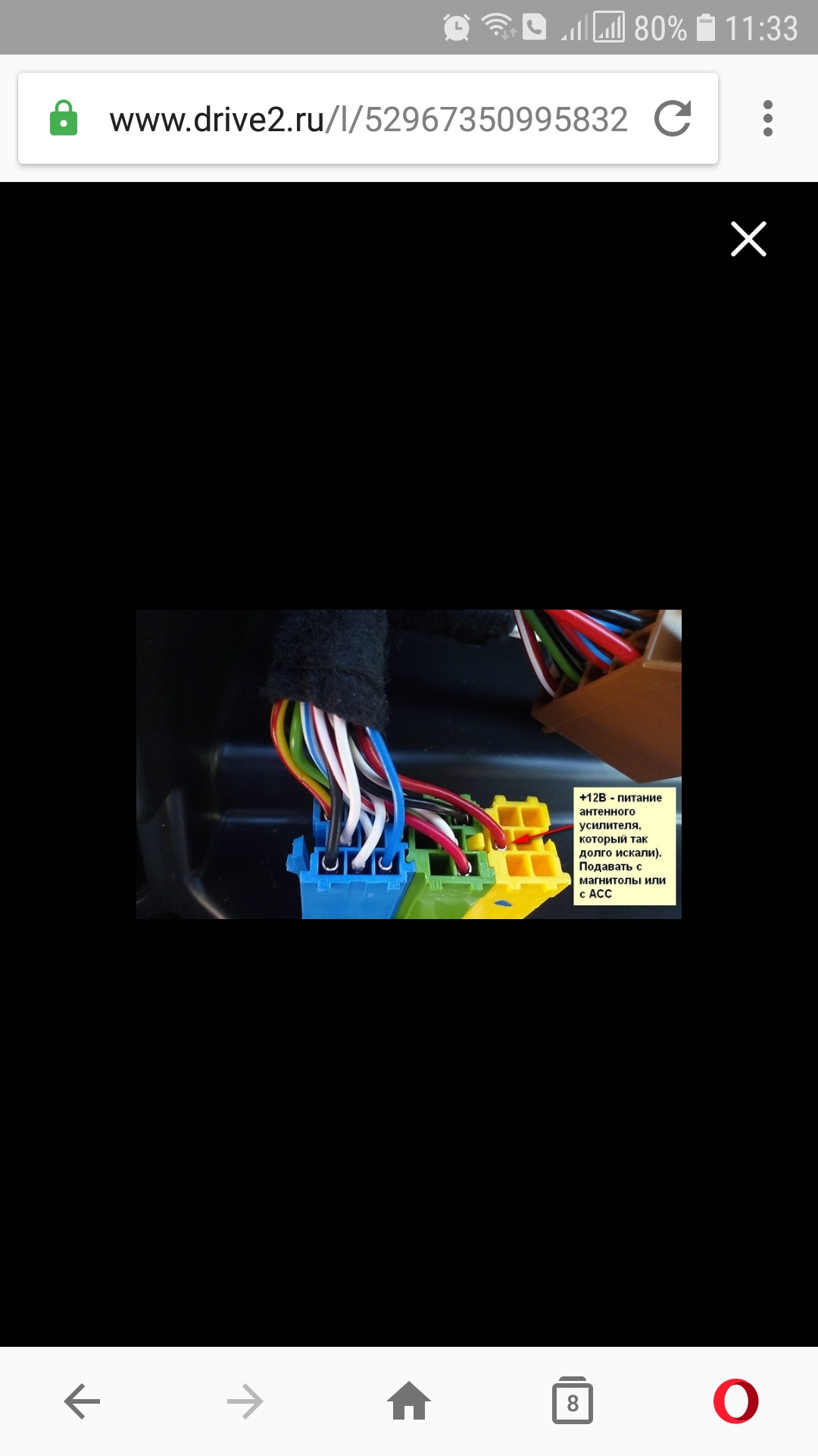 ISO под номером 5 идет, включается магнитола и сразу идёт от неё сигнал на антену она активная.