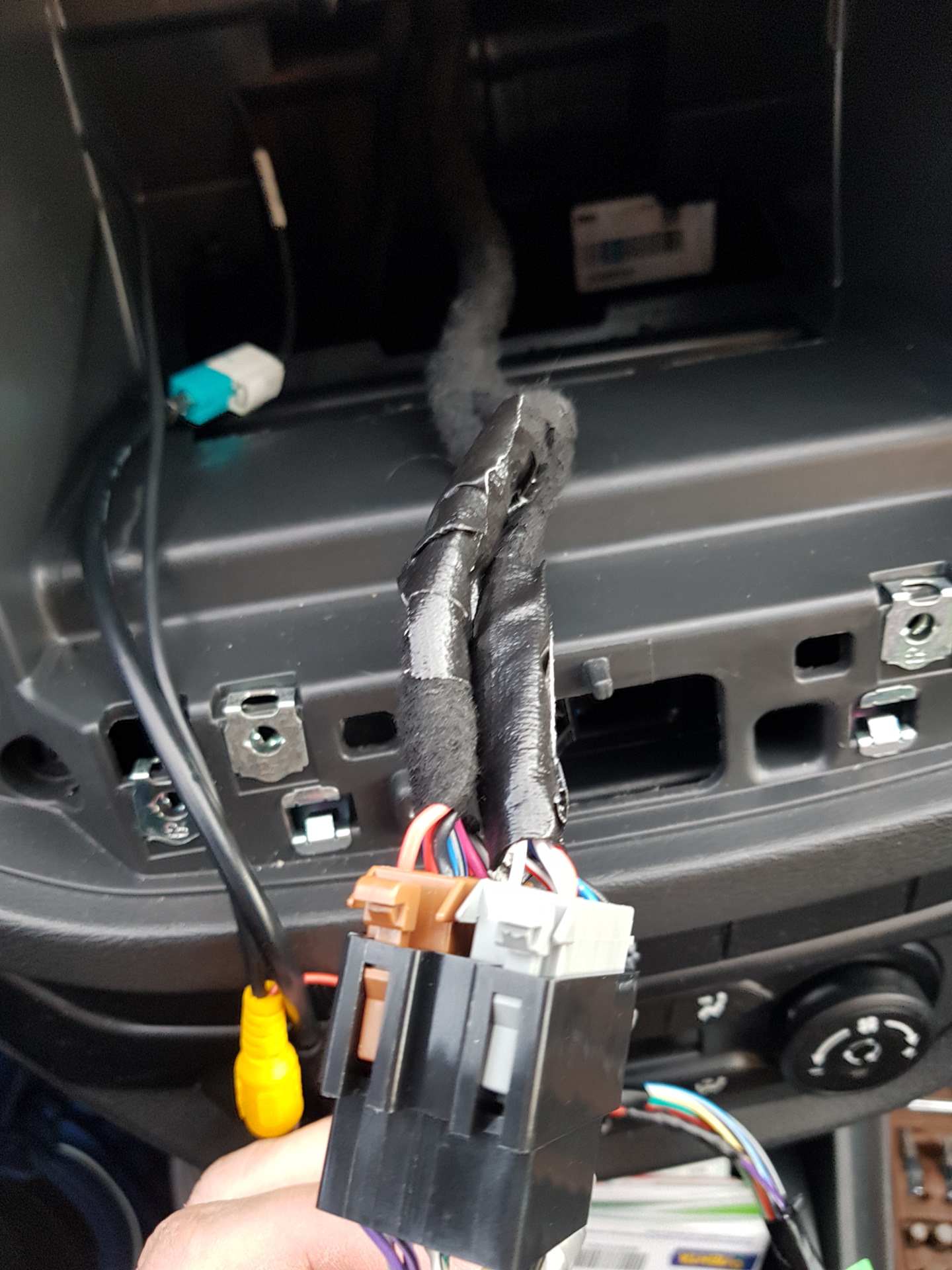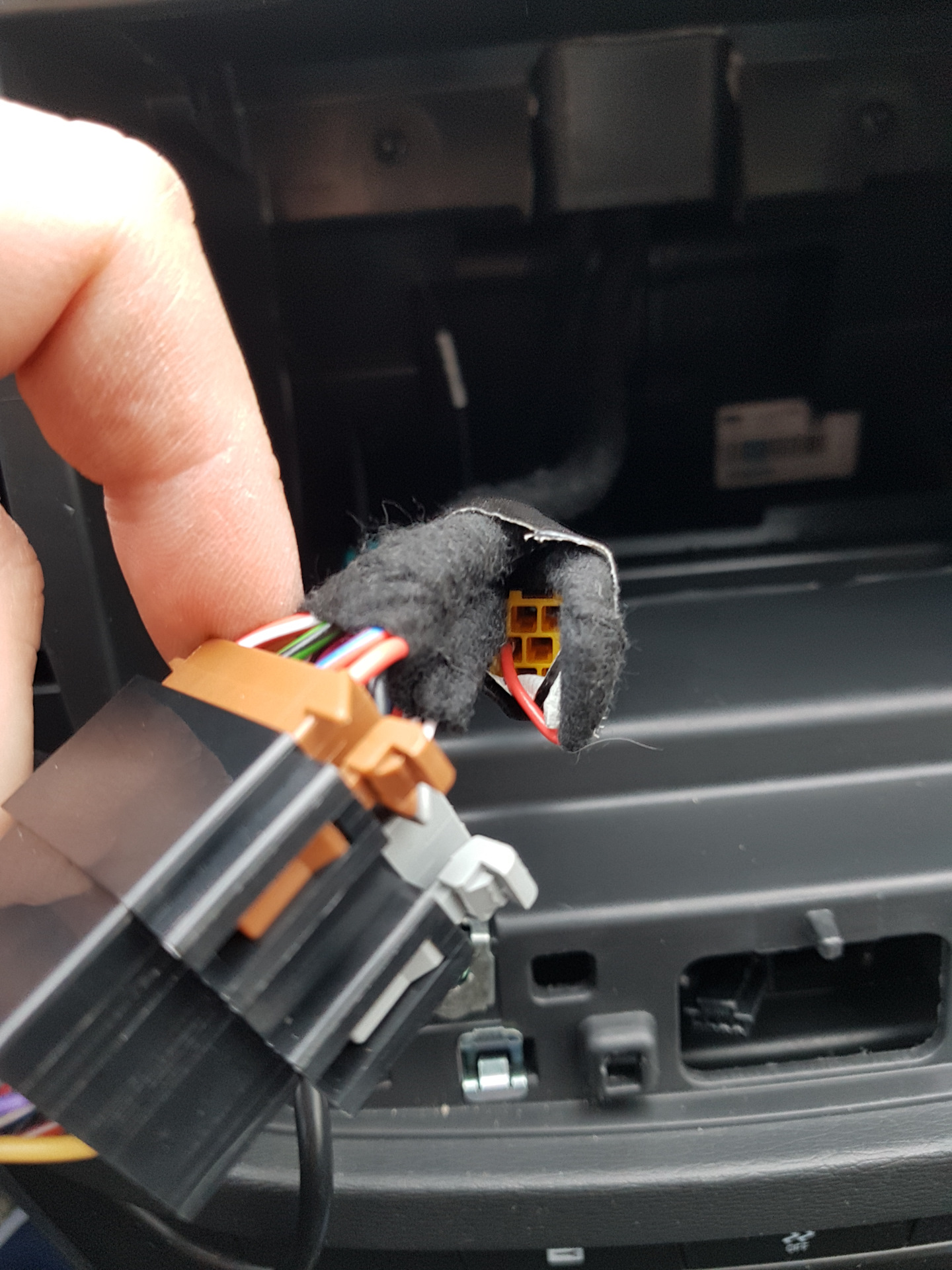 Ну а дальше варварским способом оторвал эту жёлтую фишку и приделал этот провод к тому бело розовому. Все заизолировал, укутал штатным маделином и обратно в ту же широкую заводскую изоленту.