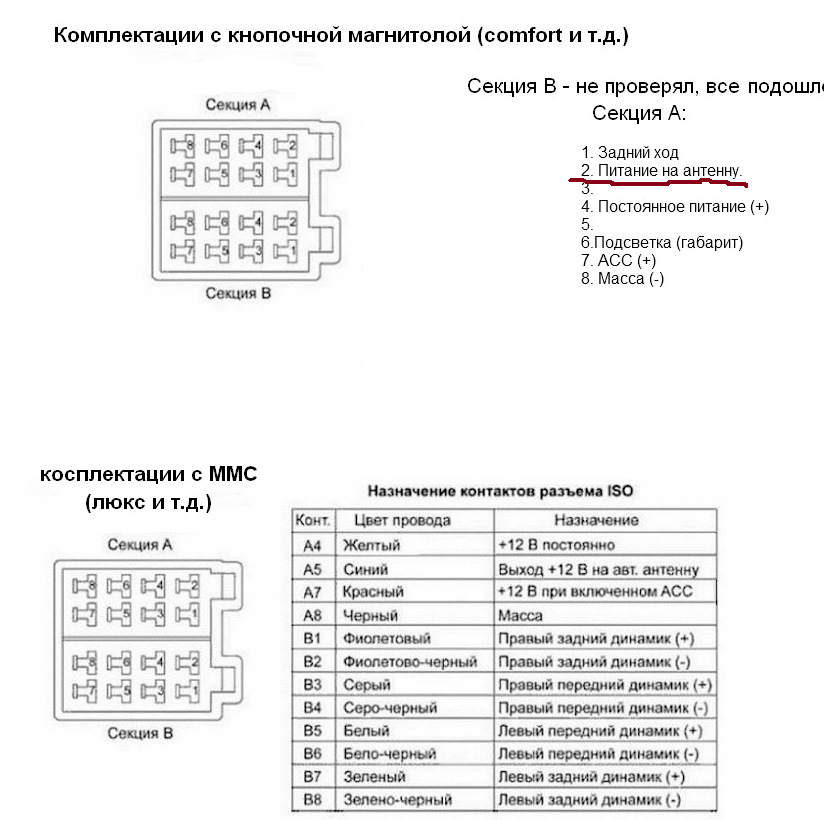 Не понятно чет.Везде разные распиновки что ли?У меня комфорт.Подключал пионер, вроде бы норм ловит. Хотя хуже чем штатная была.Тоже остался этот желтый разъем висеть без дела. Теперь мучает вопрос, что же я подключил.