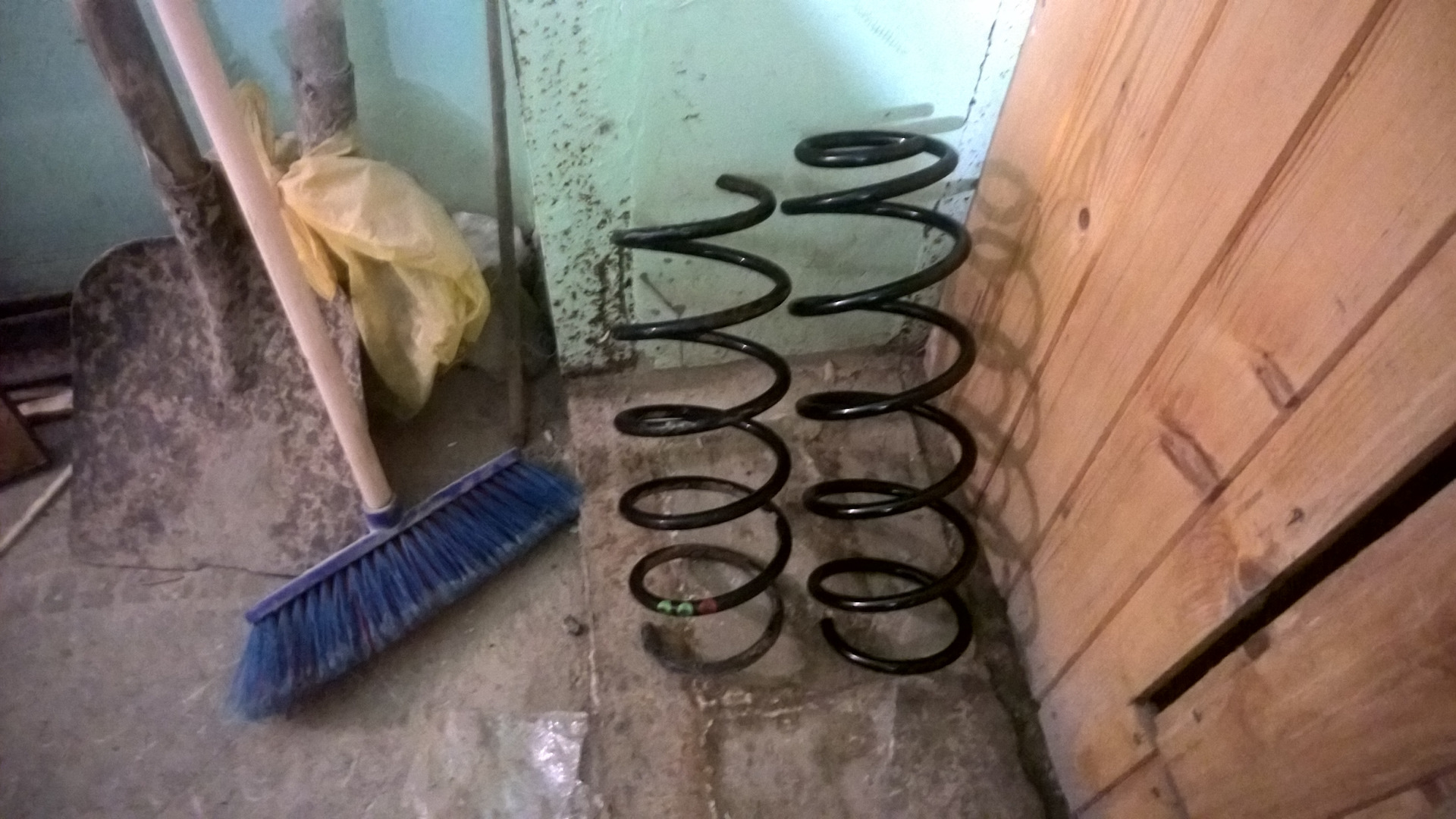 Пружины были одна с разборки, вторая со второй машины, понятное дело что подустали, хотя 3 человек сзади без багажника еще держали.