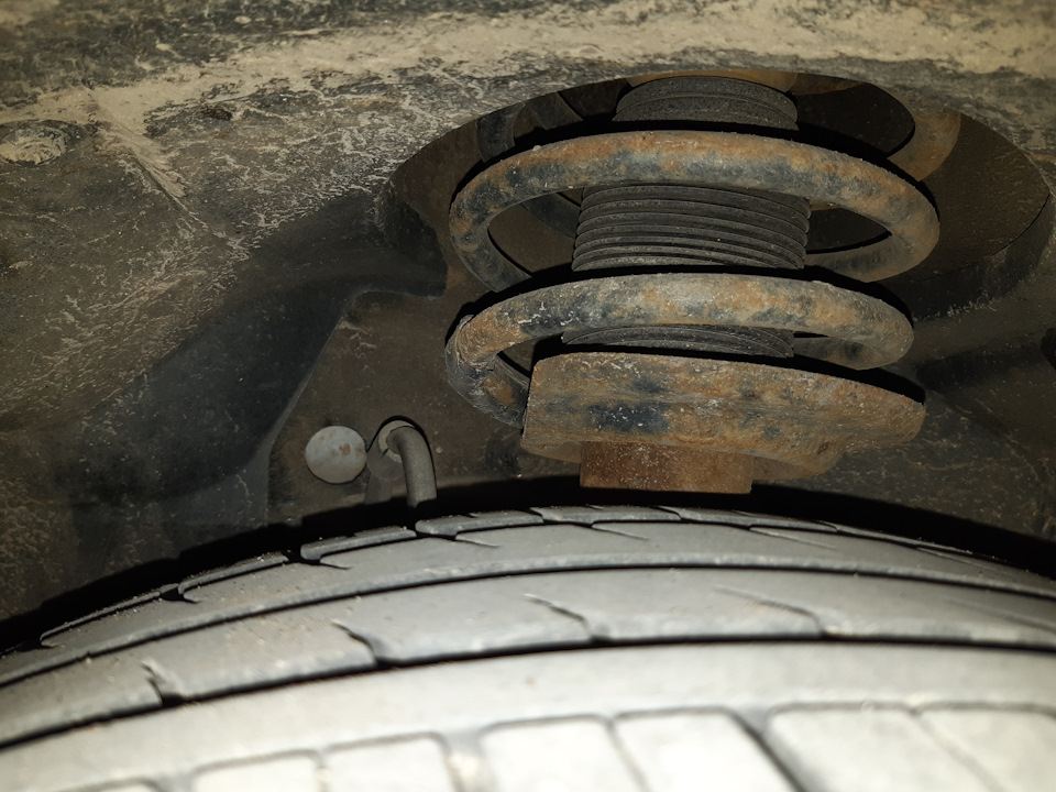 Вот передние с амортизаторами монро (никому не советую) и как видно за 3.5 года они стали ржавые, хотя и стягивали тогда на сто станком (только на верхних витках могла повредится краска, вот по этому не стал обматывать)