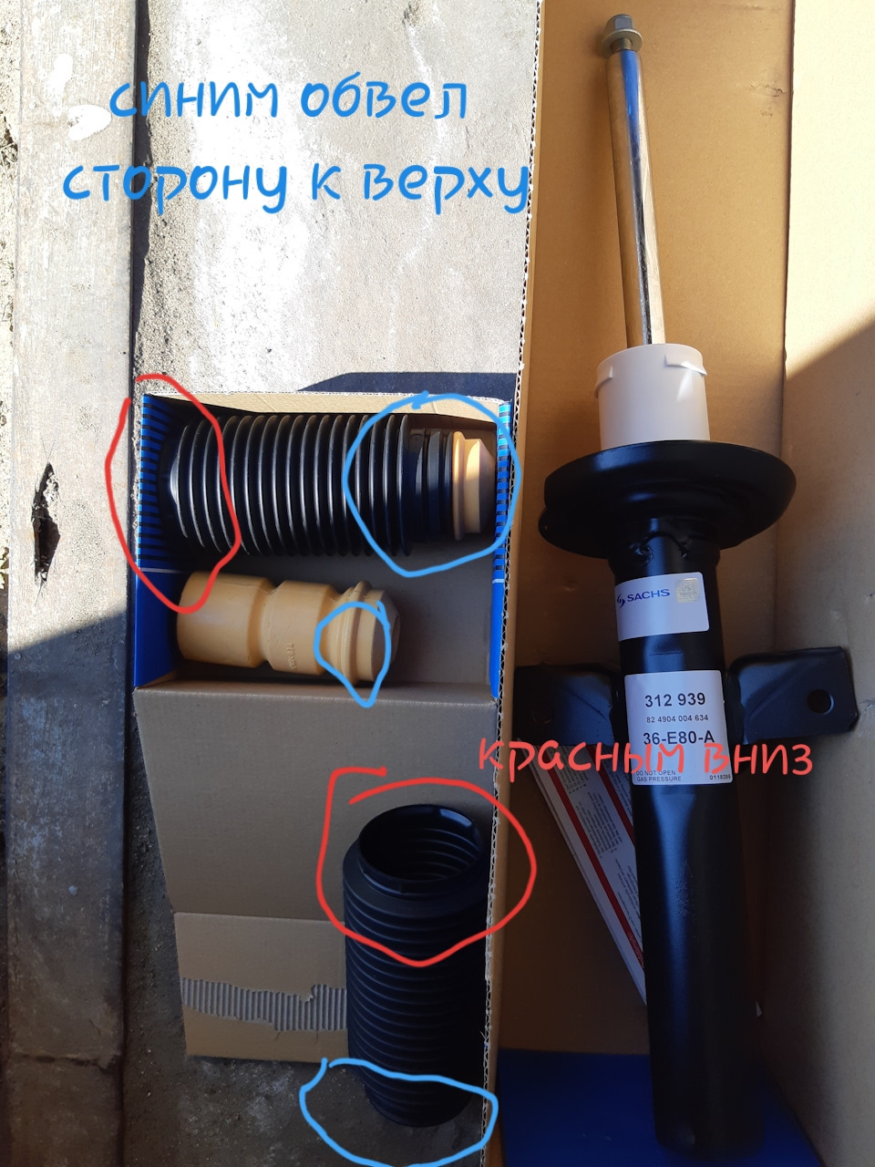 Подскажите пожалуйста какой стороной пыльник должен стоять вниз? Более широкой или узкой? Он должен снизу болтается или должен сидеть плотно на стойке? И также отбойник круглой или прямой?