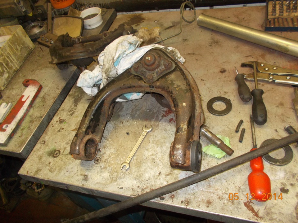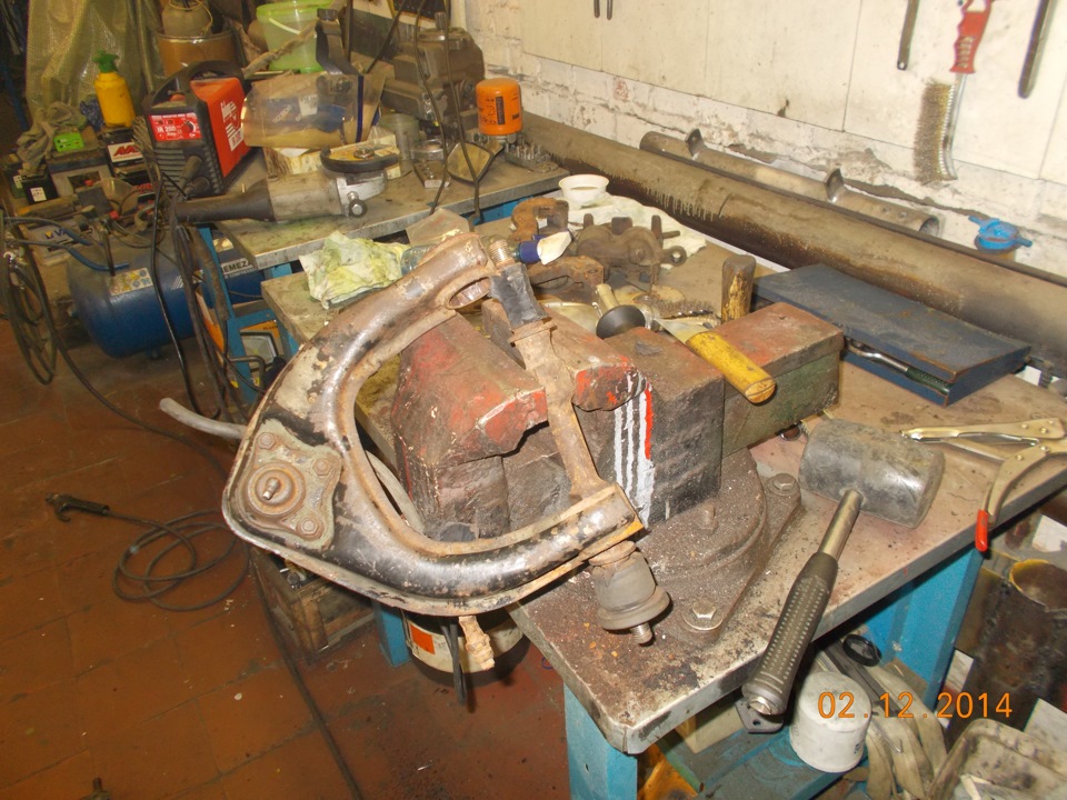 Для этого на разборке купил верхние рычаги от П2, их состояние меня не волновало, но мне они достались всборе с живыми шаровыми и целыми отбойниками.