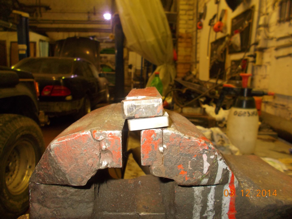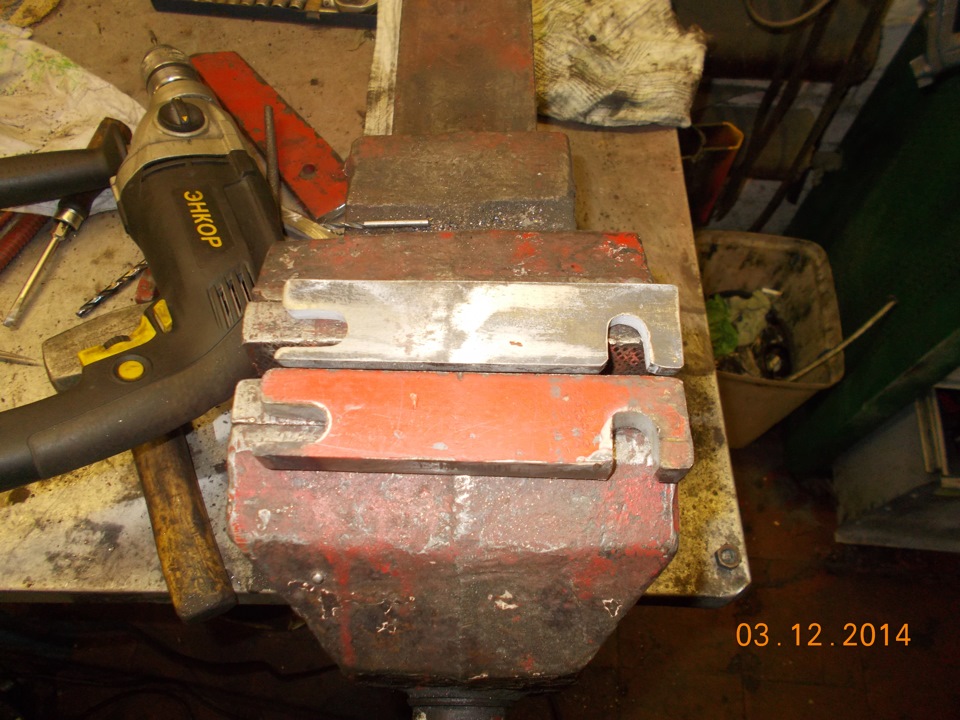 решил к уже имеющимся 16мм проставок на каждую строну добавить еще, благо длина высокопрочных болтов позволяла это сделать. Для этого взял железяку толщиной 12мм и вырезал из нее 2 пластины по образцу тех, что мне прислал Ден. Использовал болгарку, дрель и шарожку.