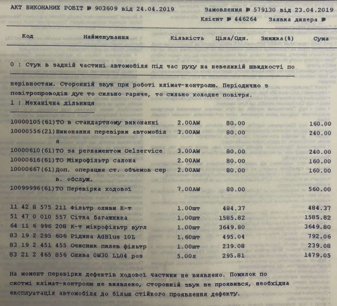 Общая стоимость ТО вышла в 11,700 ГРН (~$440) из которых 4,400ГРН (~$160) составил комплект микрофильтров салонных (рукалицо) и 1900 ГРН (~$70) сетка в багажник.