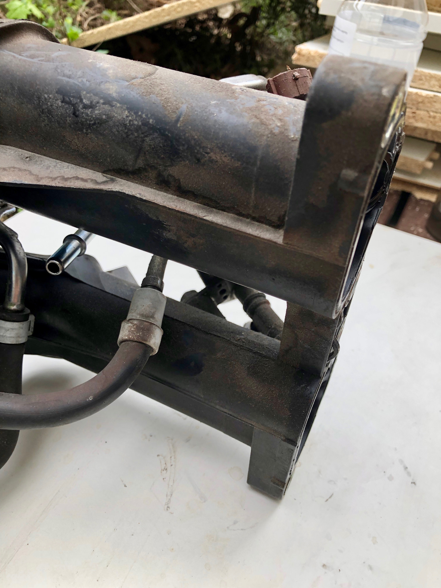 Дальше все по учебнику, откручиваем и вынимаем колектор. Нашему звору открывается, как я думал, чернющий впуск. Дальше 3 картинки того, как выглядит впеск на 100к тут.