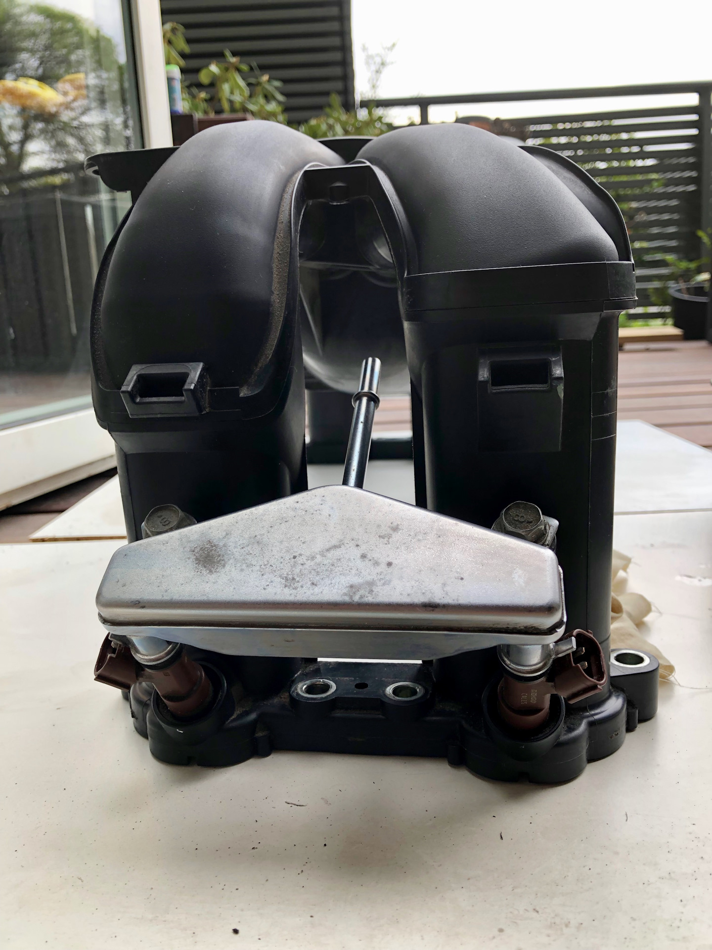 Резонатор воздушный долой. Снимаем сначала дроссель. Я знал, что он вроде как чист, но оказалось не совсем.