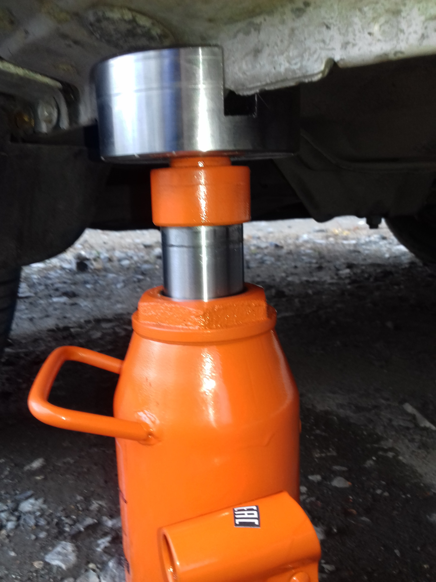 Вот как нормально поднять на таком домкрате? У меня тож такой тож 5 т, выкручиваю, и все равно мало высоты для поднятия.