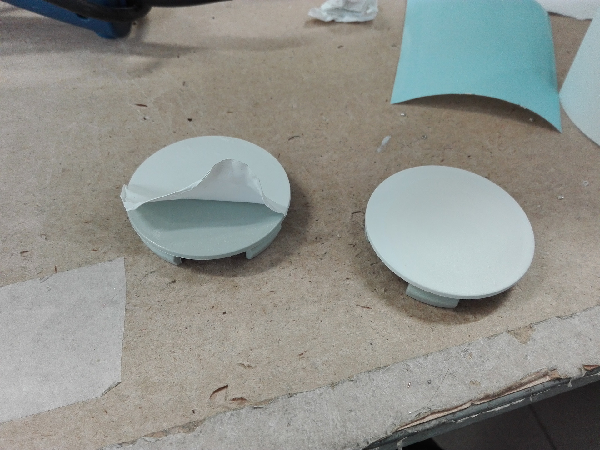 При желании на эти колпачки можно наклеить любую символику, значки, надписи и прочее, заказав их в тех же рекламных агентствах или типографиях. Но я не большой фанат таких вещей, поэтому просто белые. Кстати говоря родной цвет сликов все-таки немного отличается от цвета колпачков, при том что я пробовал и матовую пленку и глянцевую, тем не менее это лучше чем просто дырка)