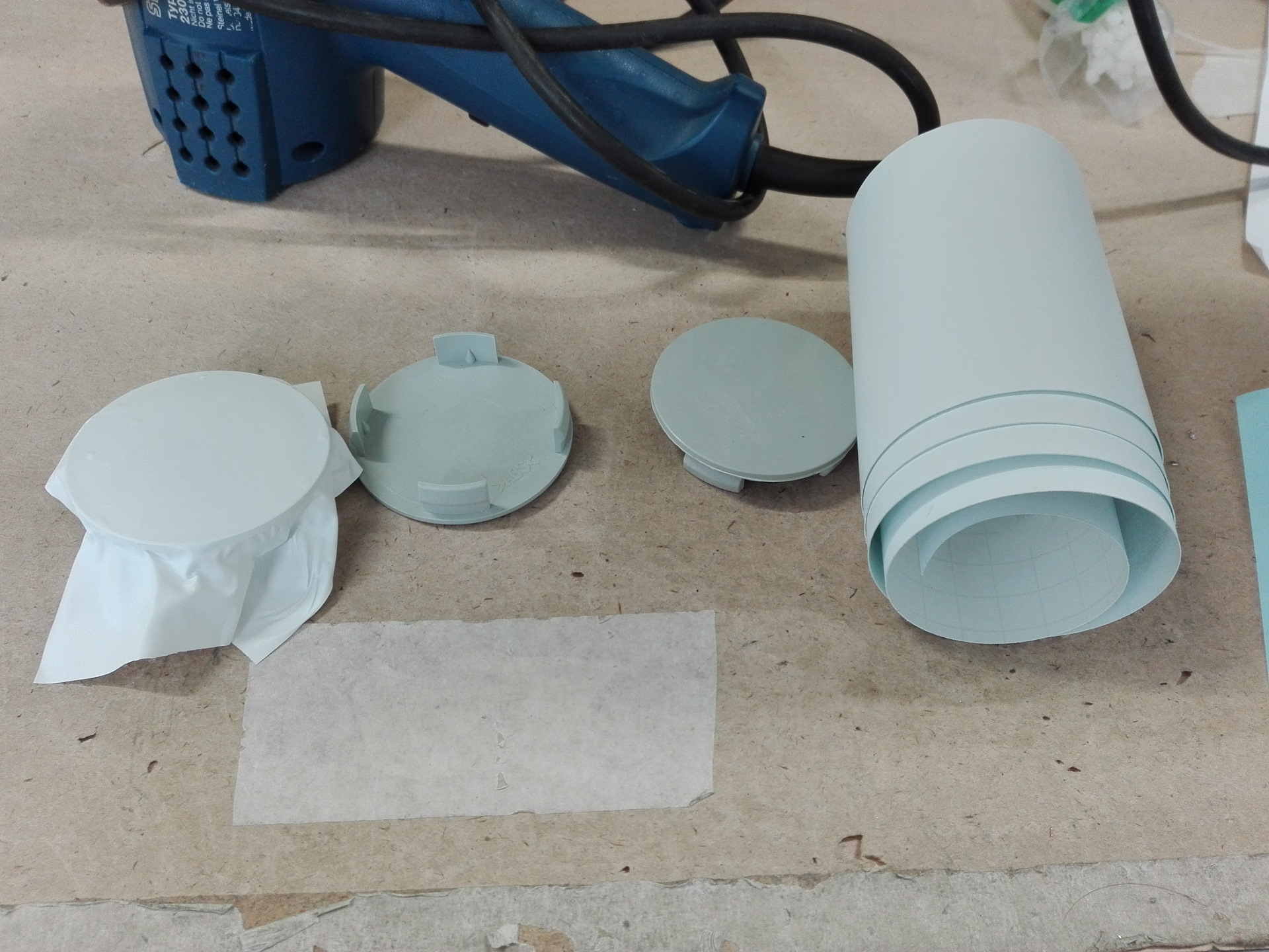 Процесс перетяжки очень прост, ввиду простой формы колпачка — погреть феном, натянуть и заправить пленку за края. Излишки можно аккуратно срезать ножом, или как сделал я — сточить по ребру надфилем.
