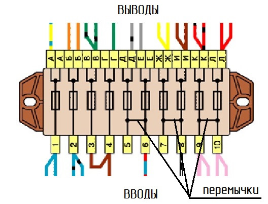 Блок на 13 предохранителей, перемычка с лева это на дополнительной группе из предохранителей (основных 10)