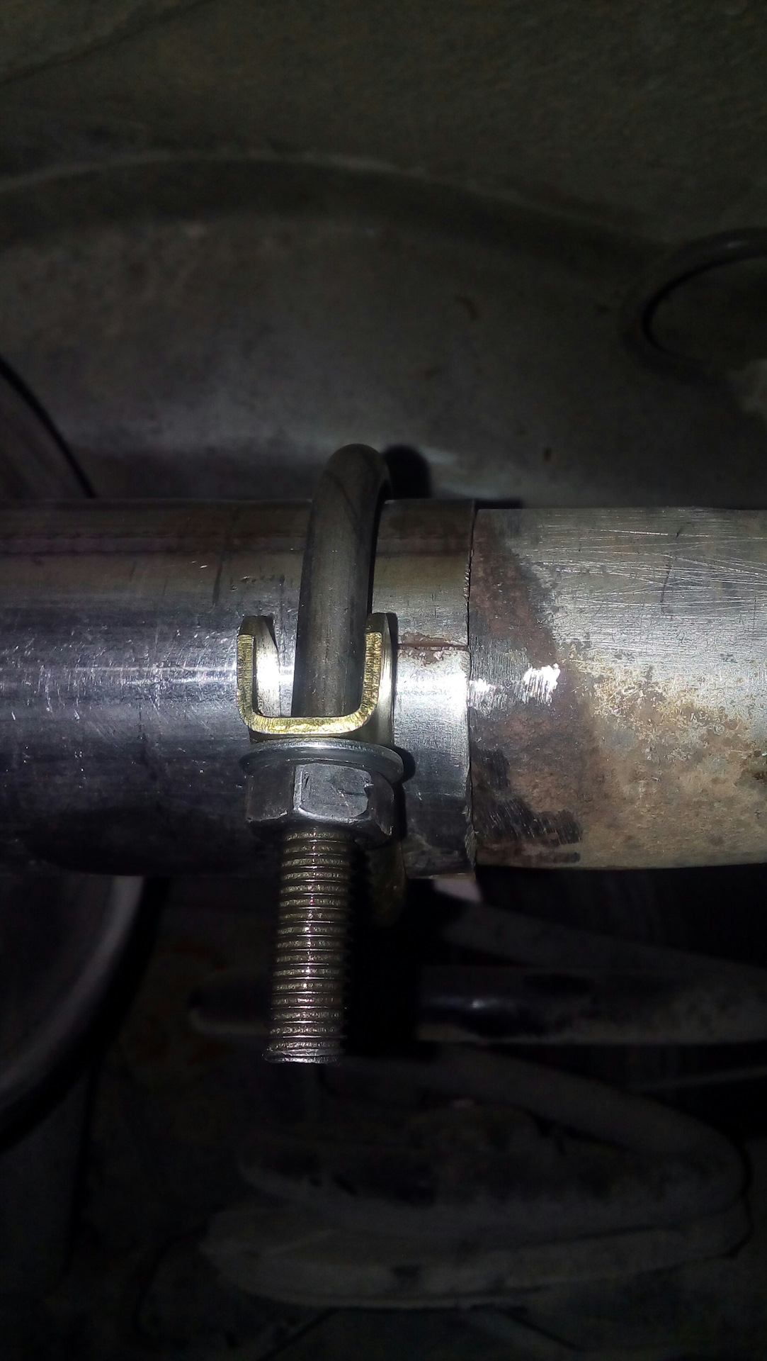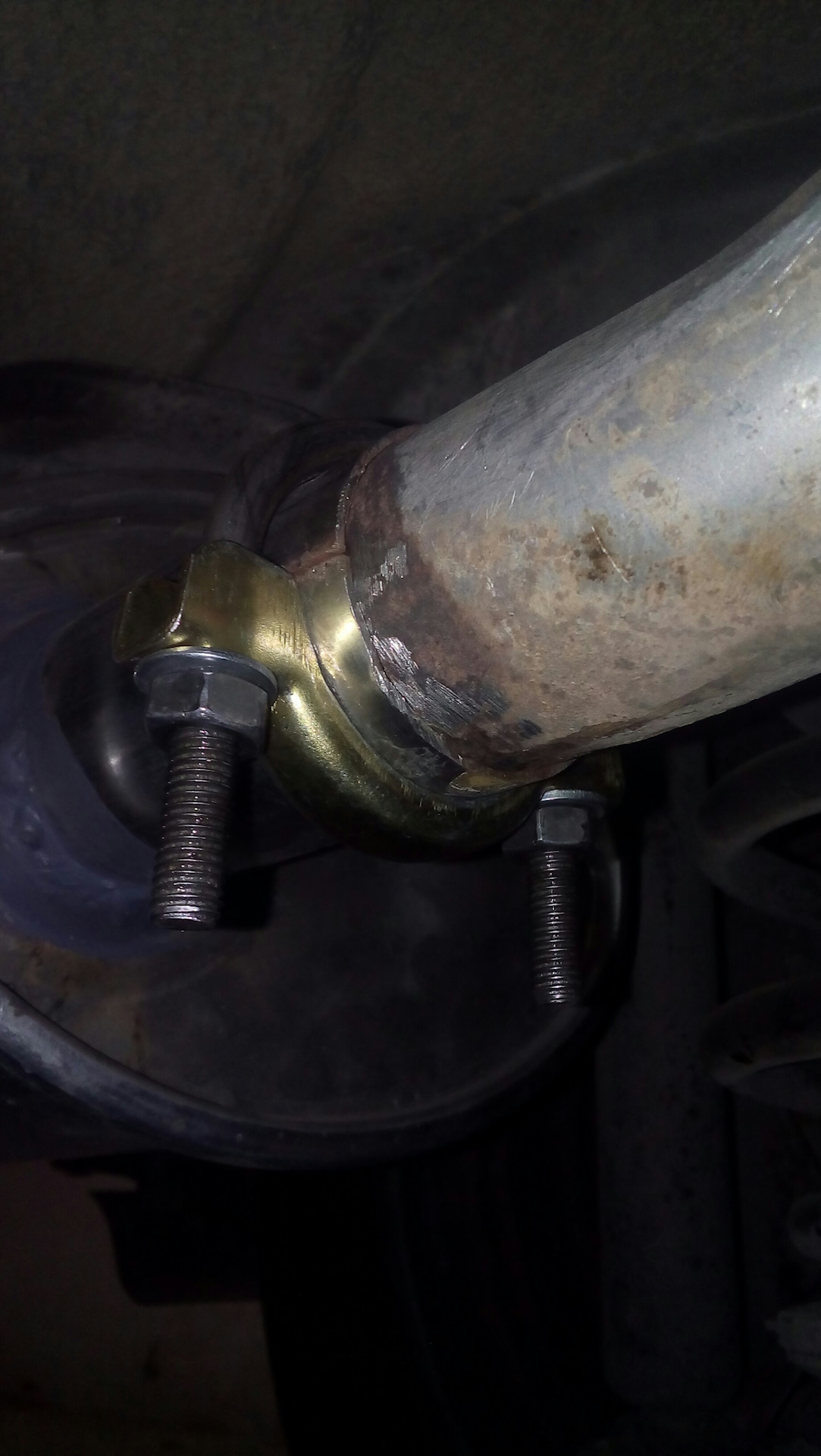 Вернулся домой и снова в яму.все установил.Пришлось новый маленький хамут брать.Мастер резьбу сорвал.GM небыло.Китай не хотел.Российские получше качеством.Взял волговский.Но все равно с прорези нового глушителя на соеденении сечет немножко.думаю сажа забьет.Установил все.вроде как раньше тихо все.Зато труба от банки не шатается как старая, сточила бампер край весь мне.На очереди новый бампер)