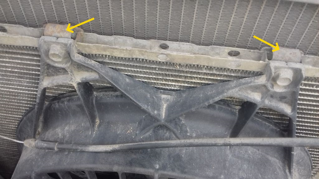 3. Откручиваем винты крепления конденсера и трубок. Забыл сфотографировать ещё одно место крепления трубки по центру внизу, трубки которая идет слева сверху вниз направо, там один винт :-). Лево-право это если стоять лицом к капоту.