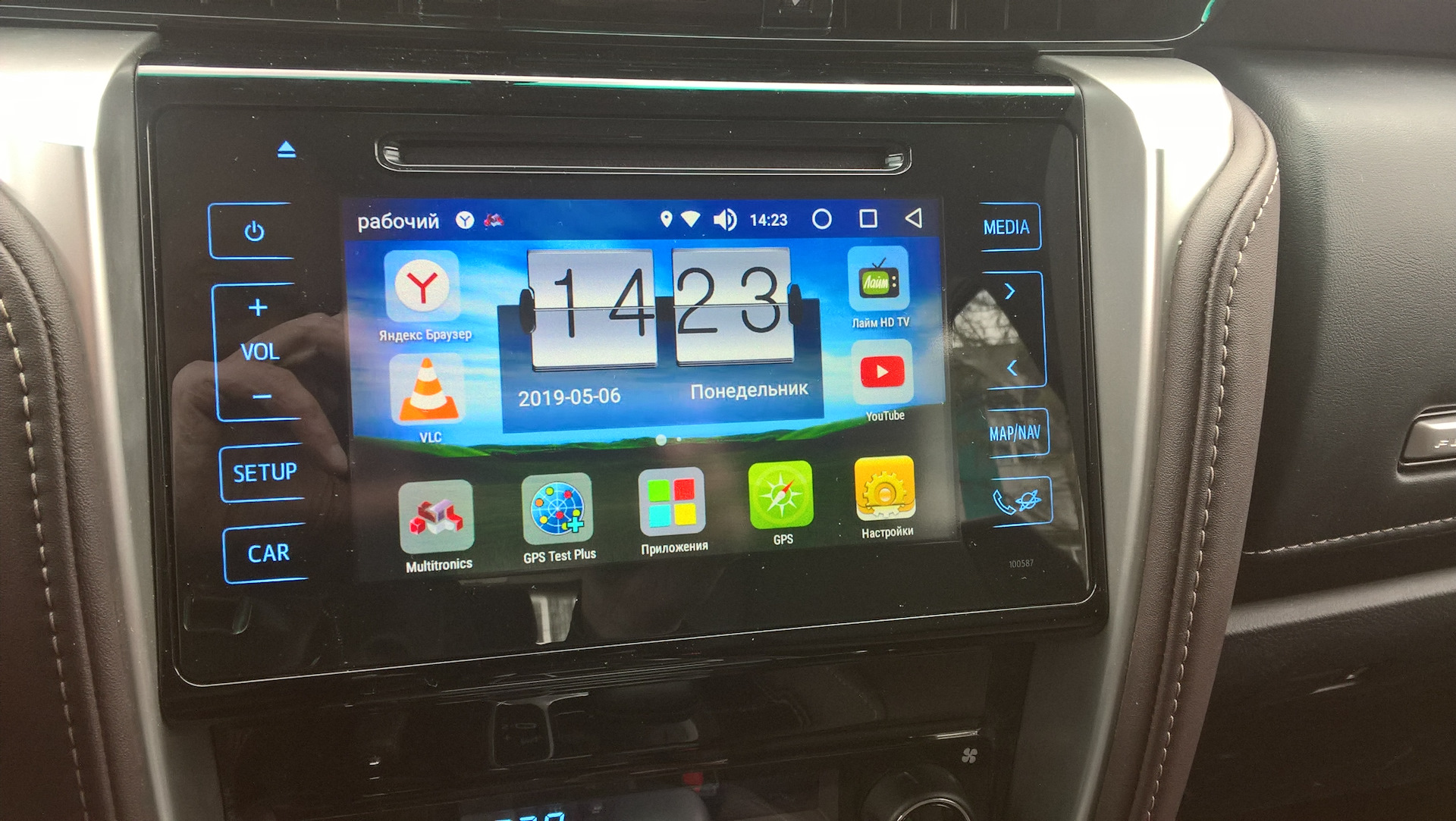 Еще до покупки машины стал искать наиболее оптимальный (для меня) вариант установки навигации на Фортунер. Почитав форумы определился, что буду устанавливать к штатному головному устройству дополнительный блок навигации на ОС Андроид. Выбор не богат, остановился на модели RADIOLA. Эти приставки давно устанавливают на Тойота Прадо и некоторые другие модели Тойоты. С конца прошлого года появилась вторая ее версия (NEW) с лучшими характеристиками и на ОС Андроид 8.0. До апреля этого года в продаже были только версии блока для ГУ Тойота Тач 2 — Панасоник. На Фортунере же установлено ГУ Тойота Тач 2 — Фуджитсу Тен. Долгожданный блок появился в продаже в апреле и был куплен, наверное одним из первых в России, у разработчиков (так сложилось, что я давно вел с ними переписку и они, хоть и не занимаются розничными продажами, наверное в виде исключения, отправили мне блок сразу при поступлении первой партии блоков для Фуджитсу Тен из Китая, где они производятся.
