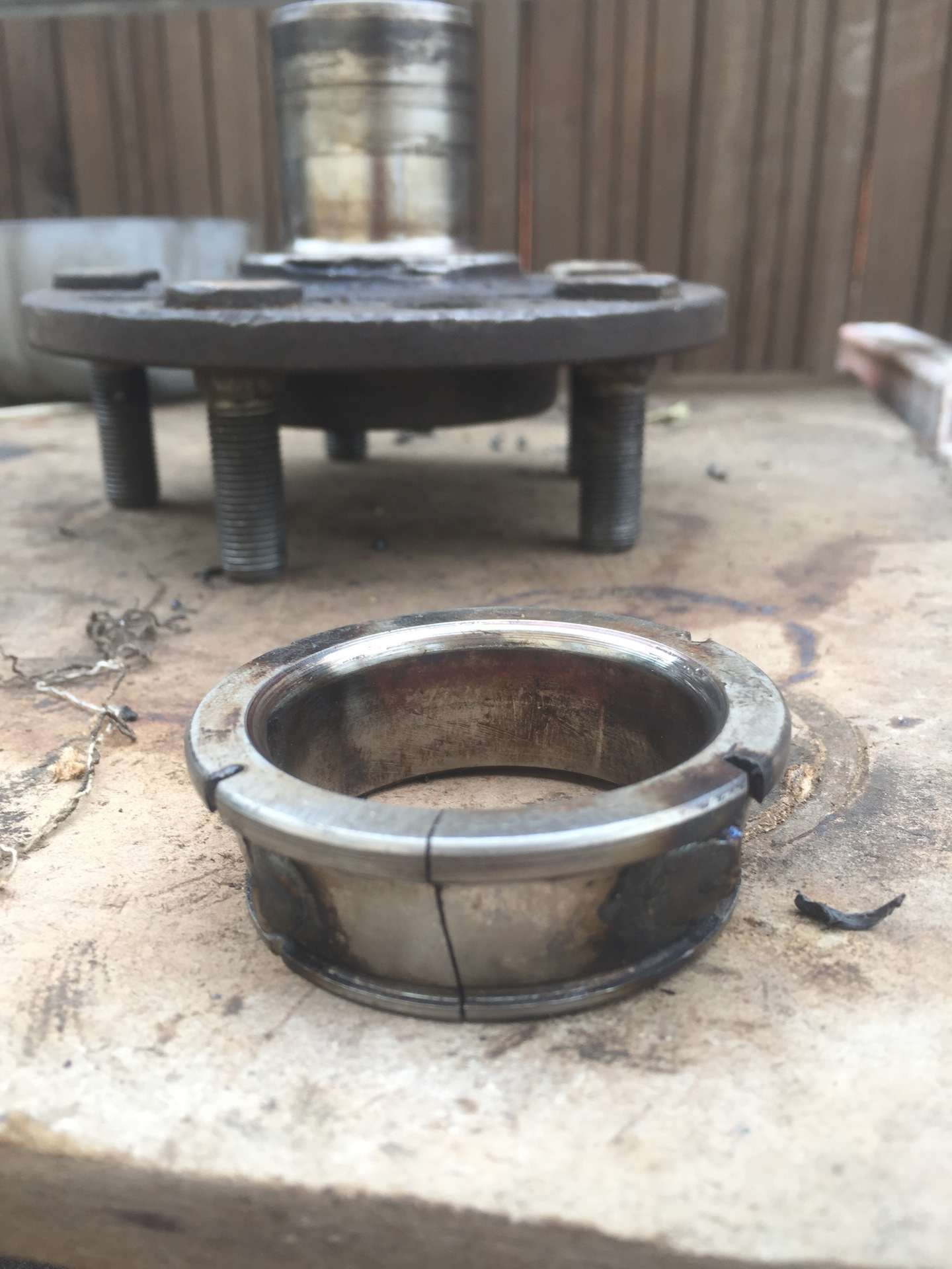 Несоответствие профилей не позволяет подшипнику сесть до упора и вызывает определенное напряжение в узле. Ранее уже наблюдался незначительный люфт в ступице, что ликвидировалось путем незначительной подтяжки. Со временем из-за напряжения или из-за кокой-то осевой нагрузки обойма не выдержала и лопнула, что привело к увеличению зазора и люфту.