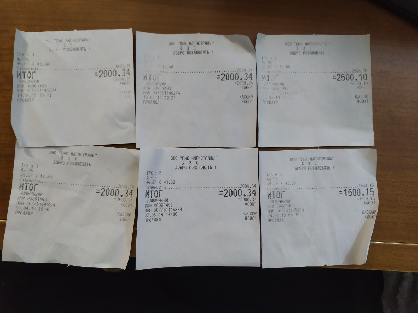 2) Заправляемся на одной и той же заправке несколько раз на одну и ту жу сумму. (В данном эксперименте 4 раза на сумму 2000 рублей с ценой за литр 43.8 )