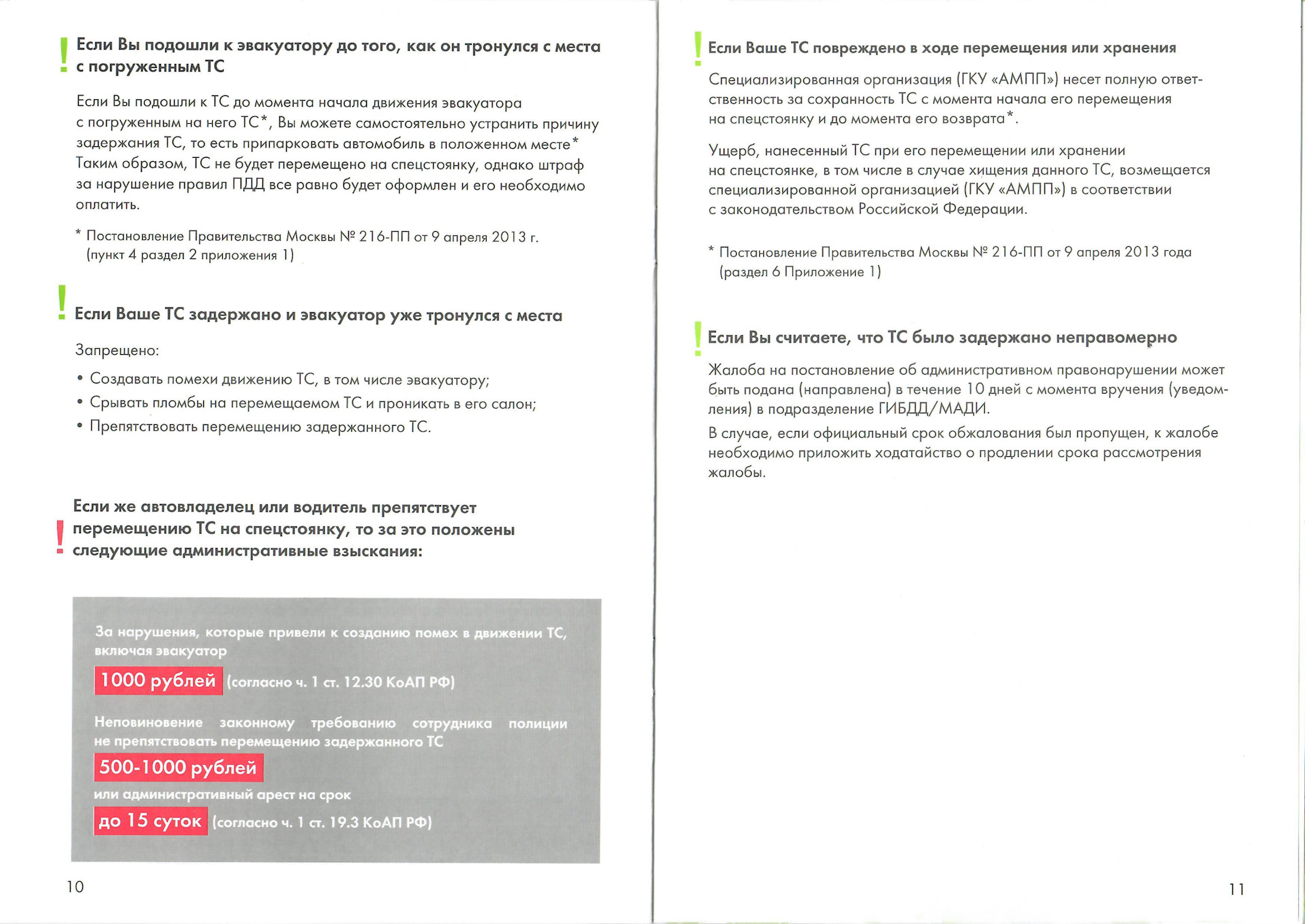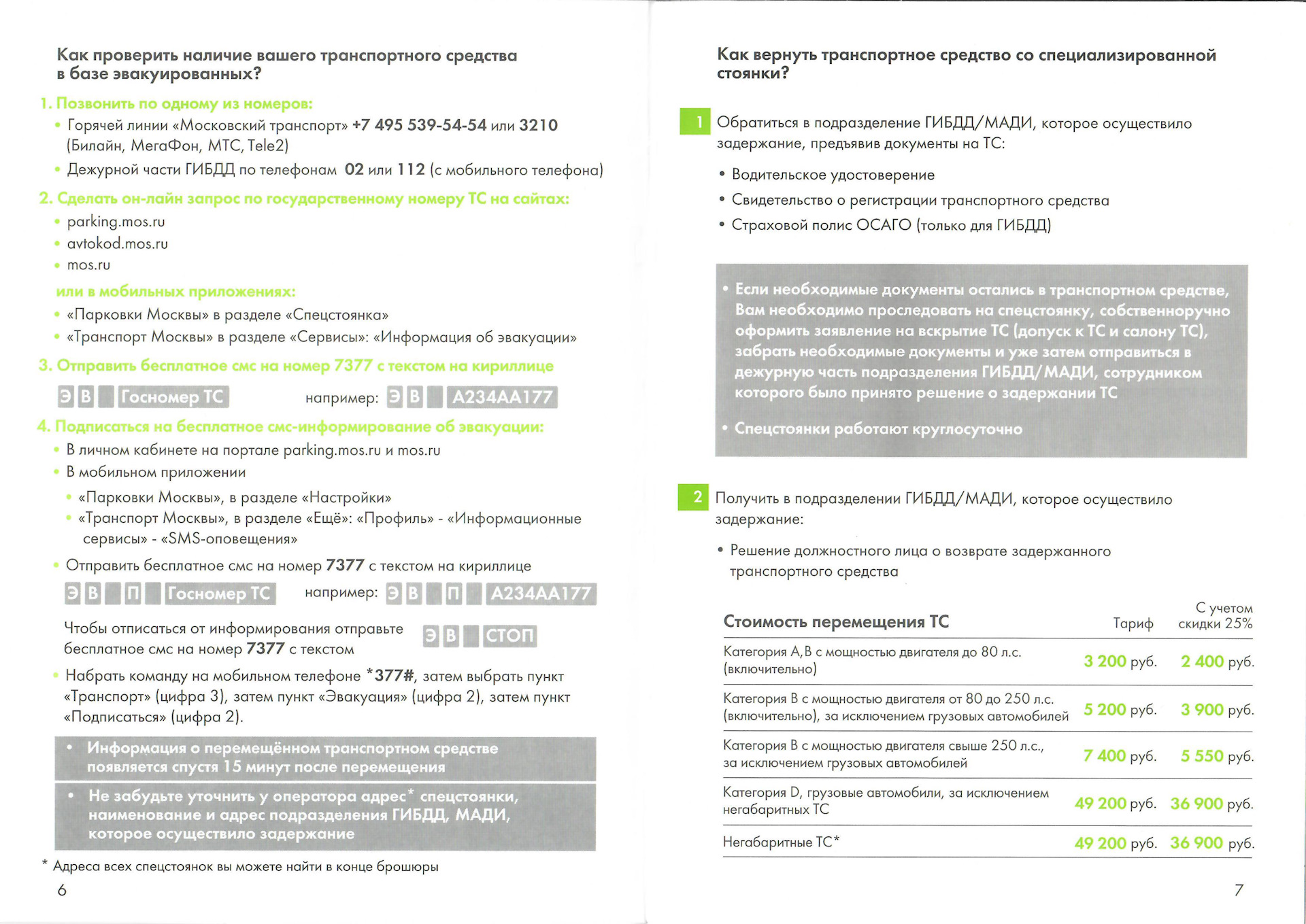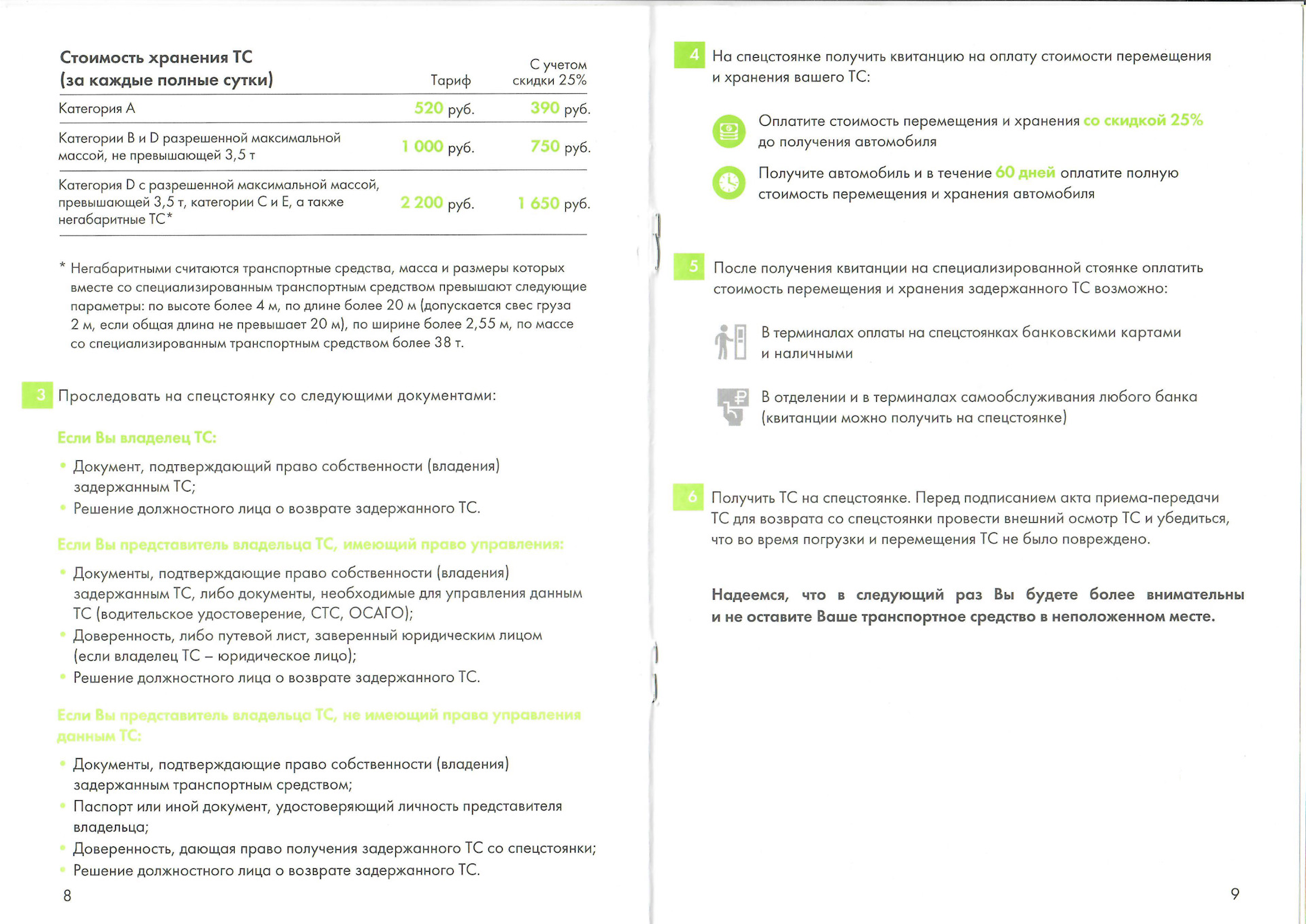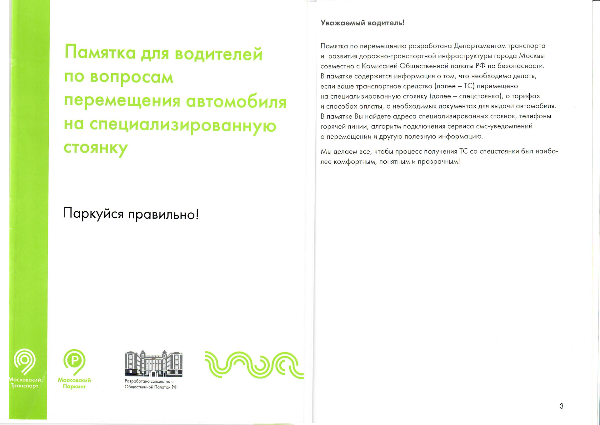 На столе лежит Памятка для водителей по вопросам перемещения автомобиля на спецстоянку.