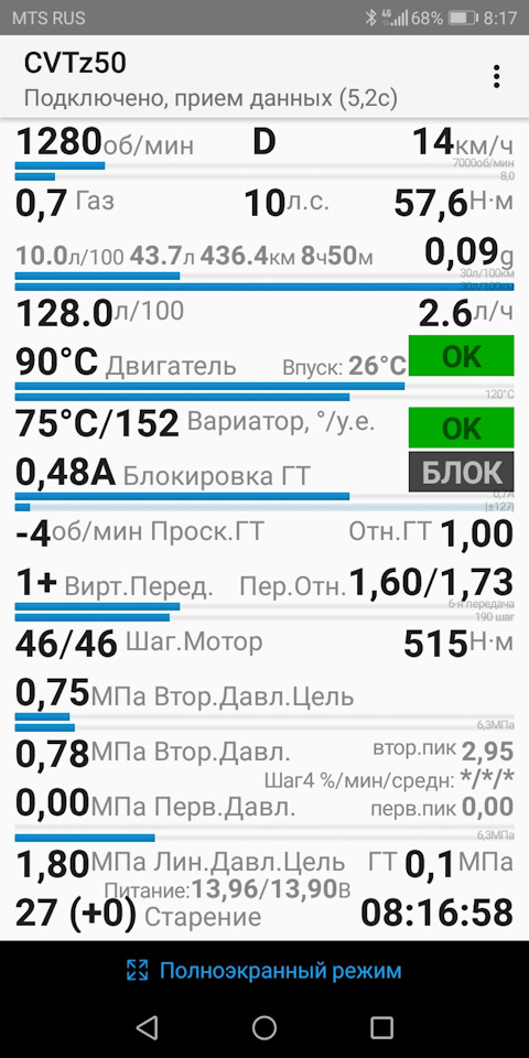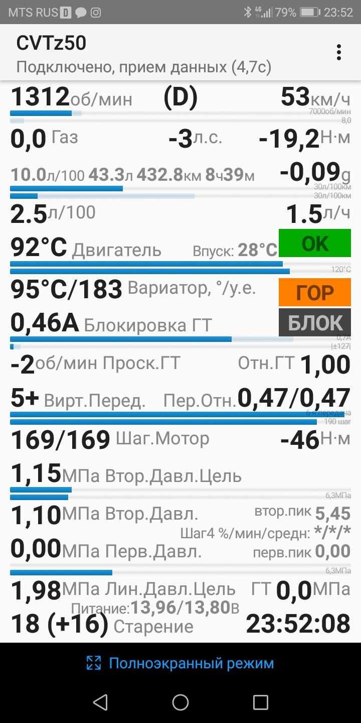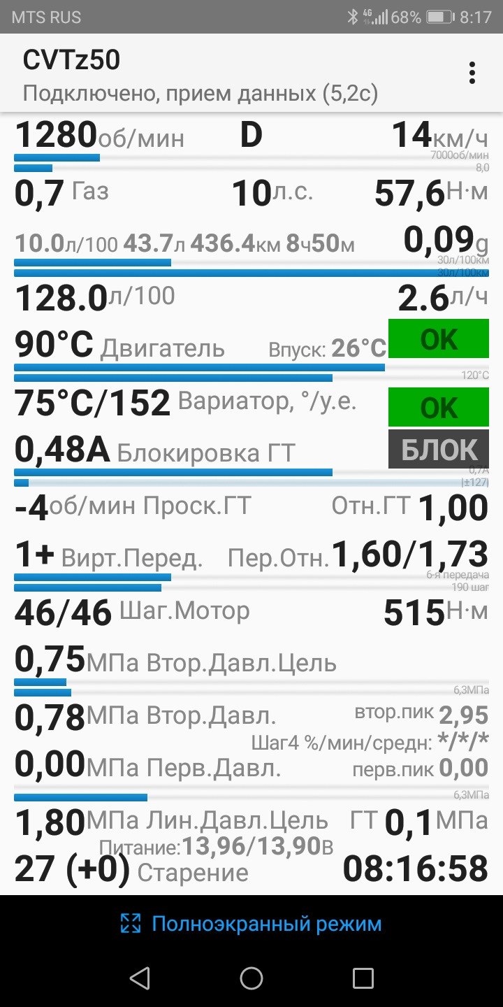 После прошлой замены проехал 20 000км, и накрутило 4200моточасов вариатора. Решил сменить масло на новое и не зря, старое было уже не очень хорошего качества. Обнулил счётчик старения масла через ELM. Сейчас на паркинге при 700 оборотах 0.78 давление. Было где то 0.56.