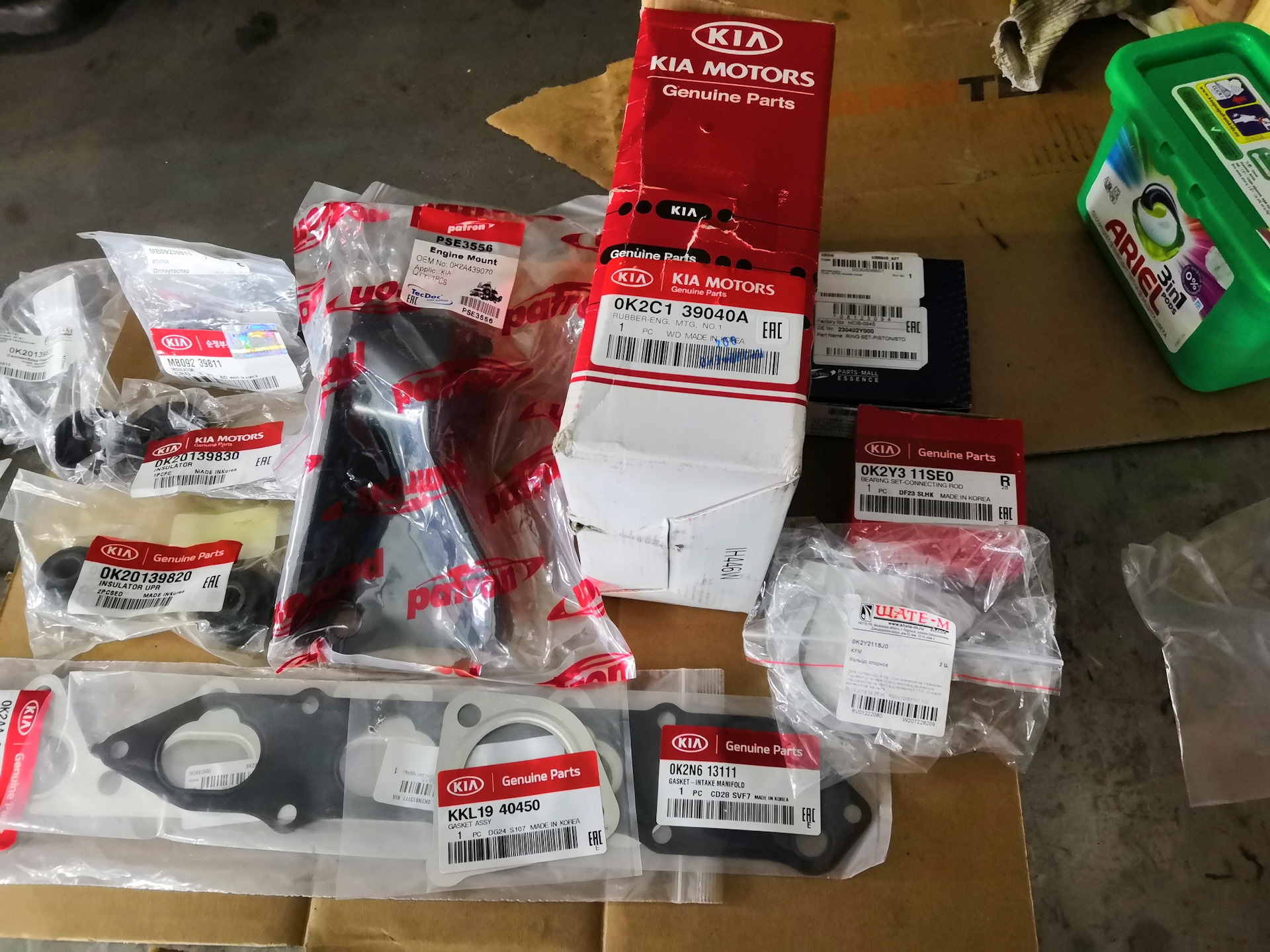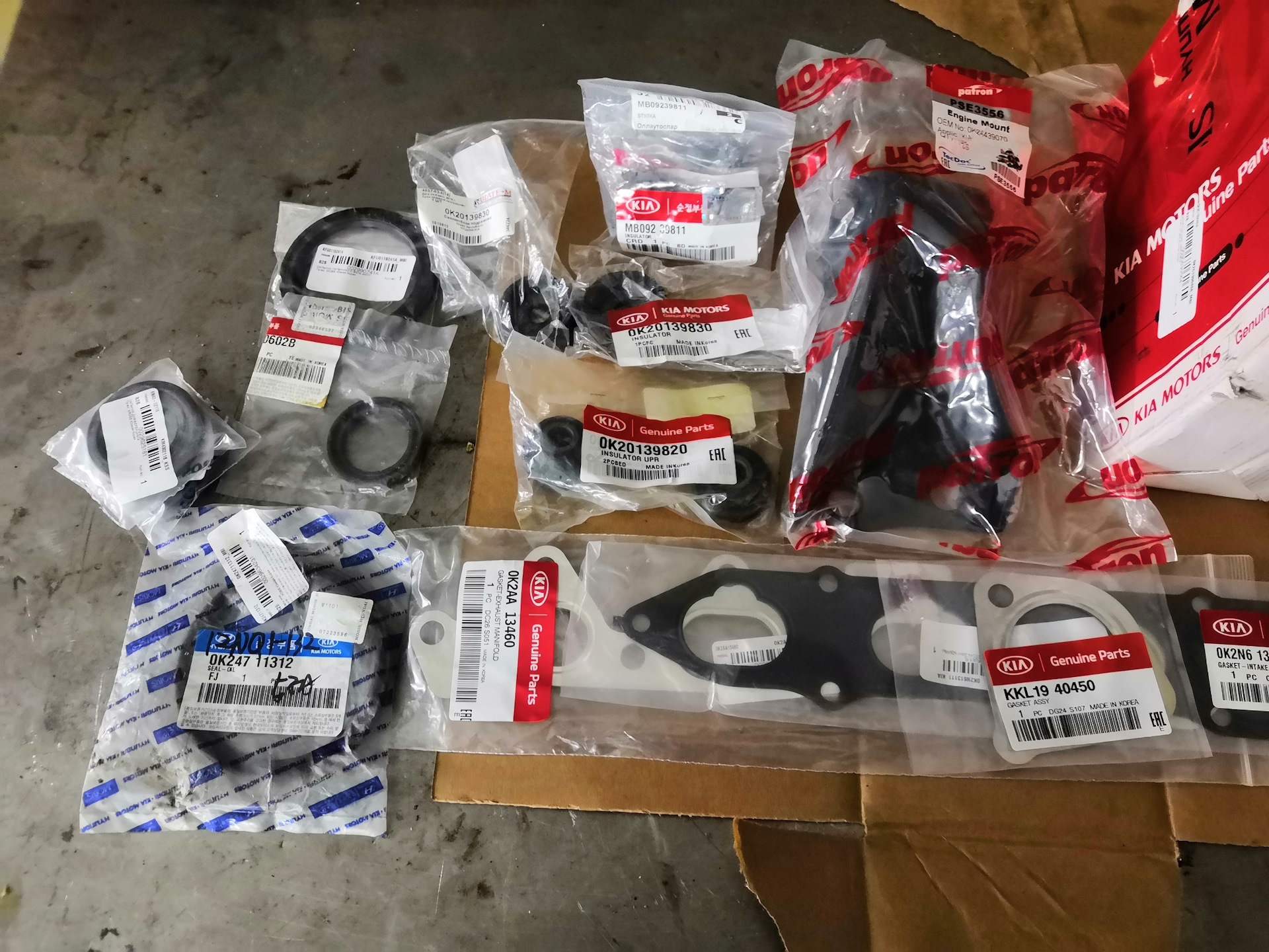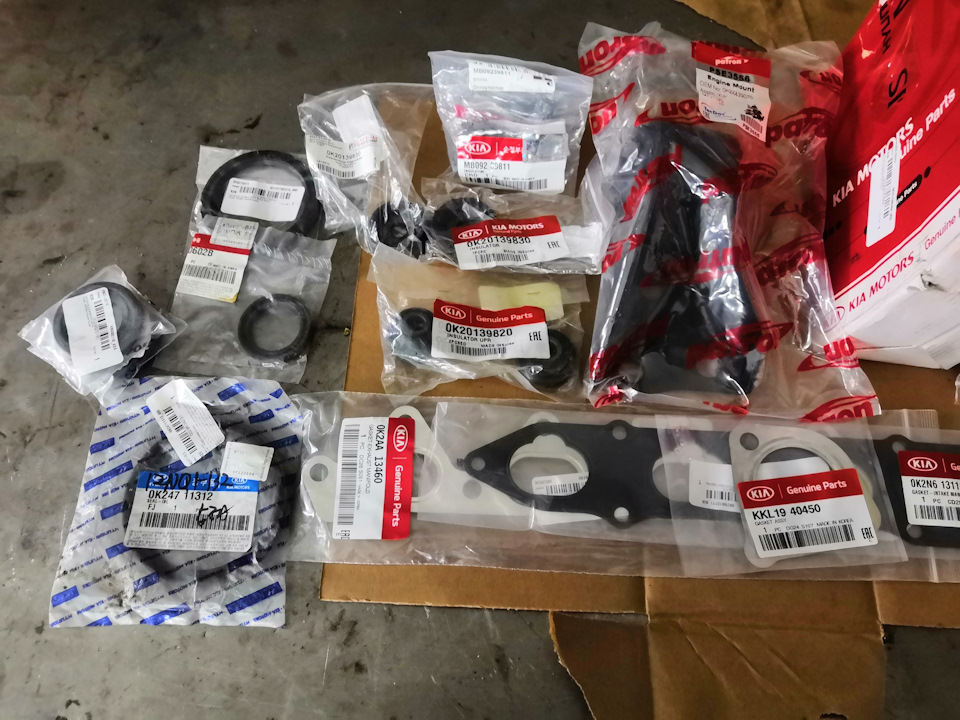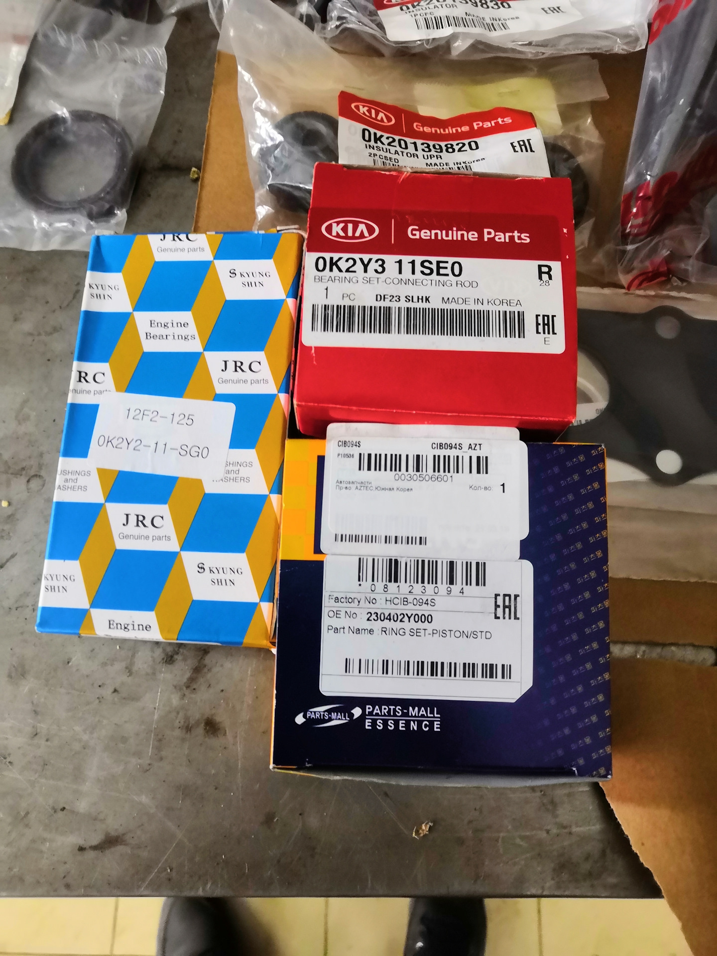 После разборки мотора выяснилось, что залегли масло съёмные кольца, а износ компрессионных очень велик. Всё остальные детали ЦПГ в пределах допуска. Заказал запчасти. Очень долго искал коренные вкладыши. Оригинал 12000 и ждать 45 дней. Аналоги привозили два раза не те. От 1.6 мотора они меньше намного. Через Московскую фирму заказал по оригинальному номеру. И с третьего раза повезло. Осталось все собрать.
