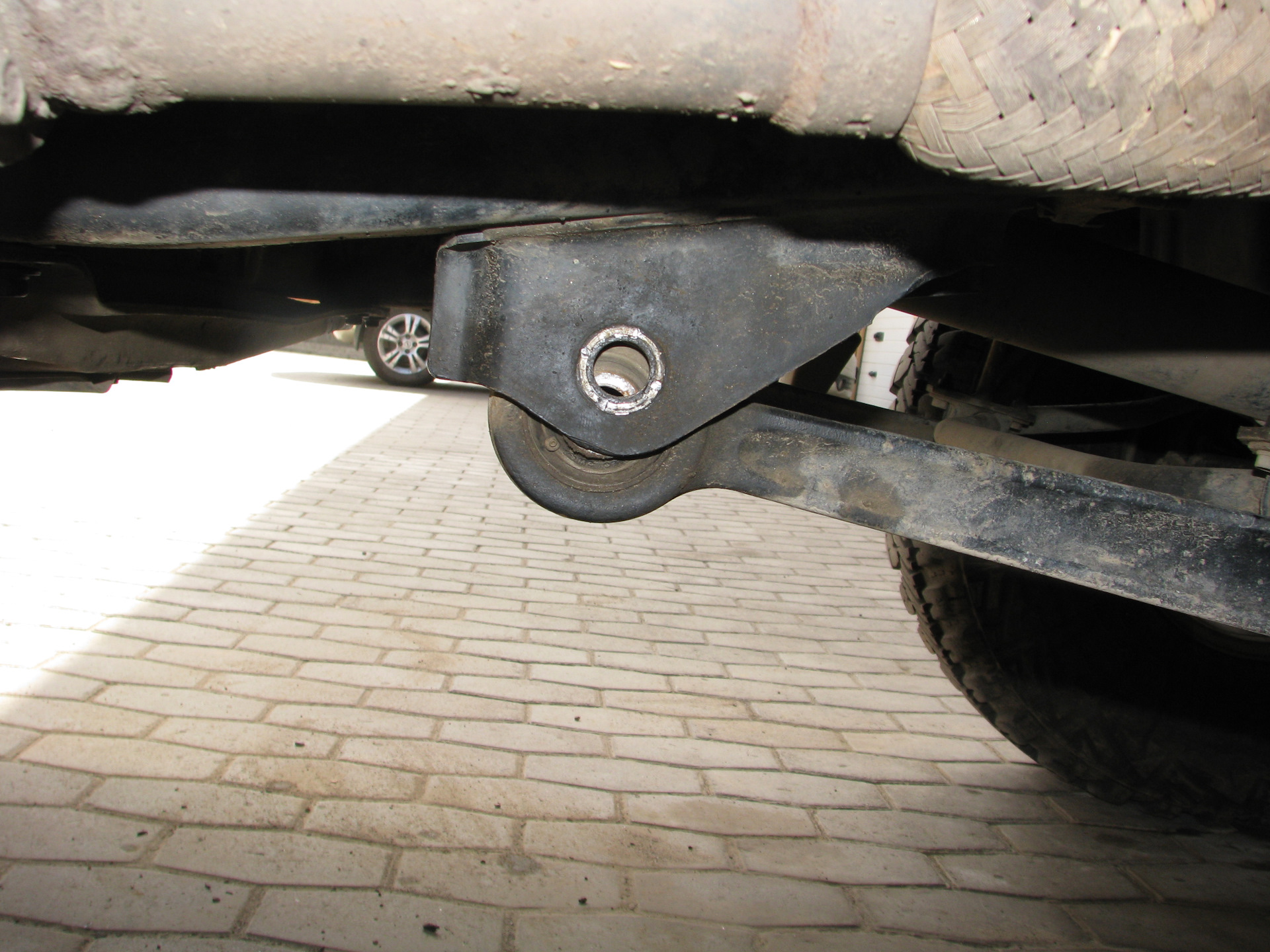 Они встали практически идеально без каких-либо доработок. Я хотел поставить наверх новые болты без конусов, чтобы потом было проще крепить рычаги. Но не получилось. Резьбовая часть, фактически диаметр которой был 17,8 мм, нормально проходила во втулку дроп-бокса. А вот цилиндрическая, которая по факту 17,9 мм, во втулку уже не пошла. Пришлось ставить сверху штатные болты, которые нормально вошли во втулки. Мост действительно немного сместился:
