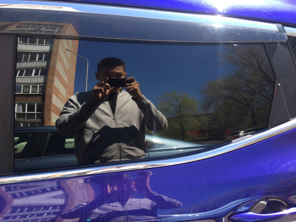 Так к примеру спаттерный вид тонировки, несмотря на заявленные 5%, оказался почти прозрачным при виде изнутри автомобиля, Тонировка марки Suntek Infinity оказалась реально темной как ночь и все таки отпугнула меня своей радикальностью. И последним кандидатом был металлизированный Llumar, который соответствовал моим интуитивным внутренним стандартам как уровнем затеменения снаружи, так и сравнительно неплохой прозрачностью при виде изнутри авто.