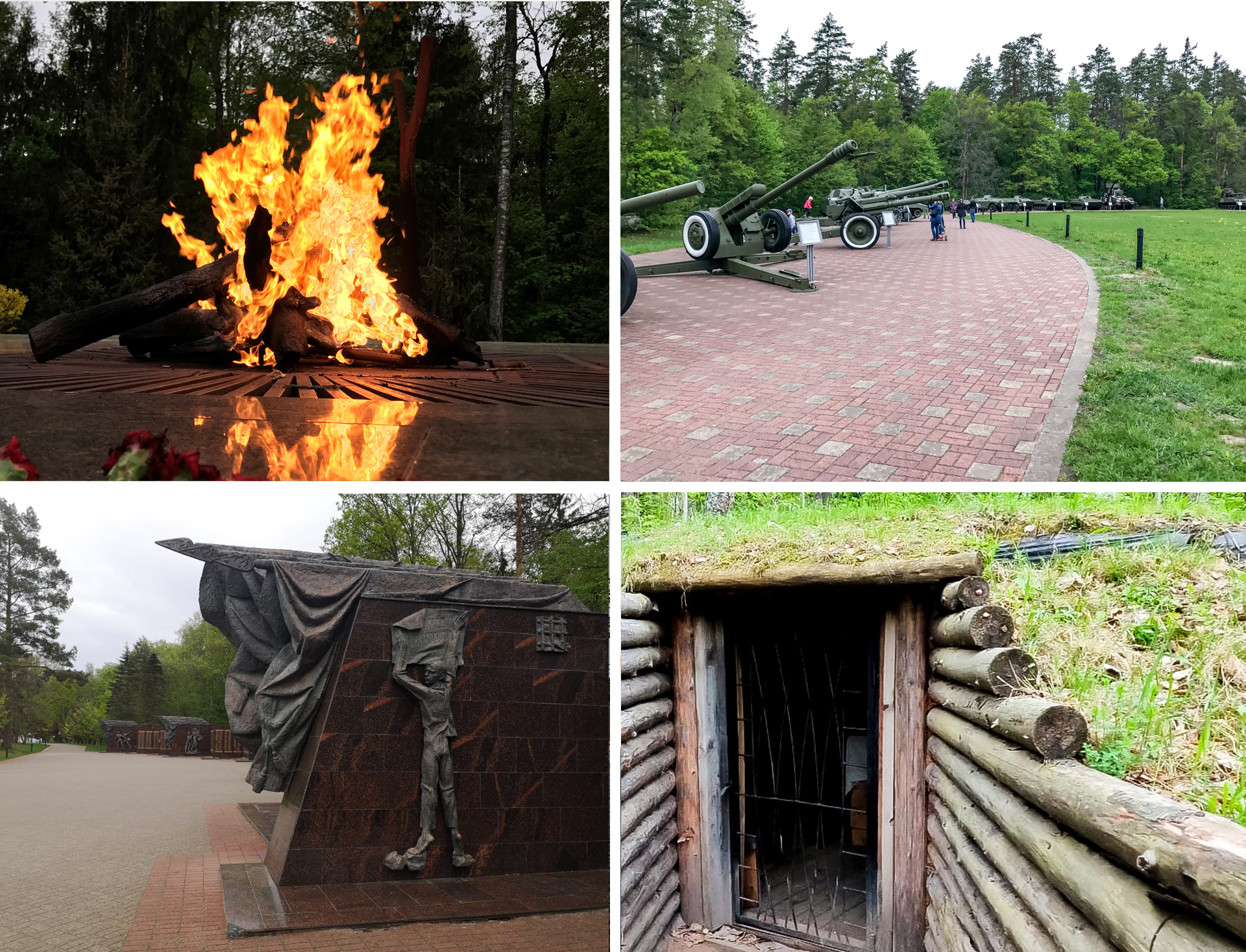 В мемориале представлены все области партизанских движений с останками, а так же военная техника, начиная с экспонатов 1941 года до современных акаций и гвоздик. К тому же были среконструированы землянки с разными назначениями. Короче, к посещению обязательно!