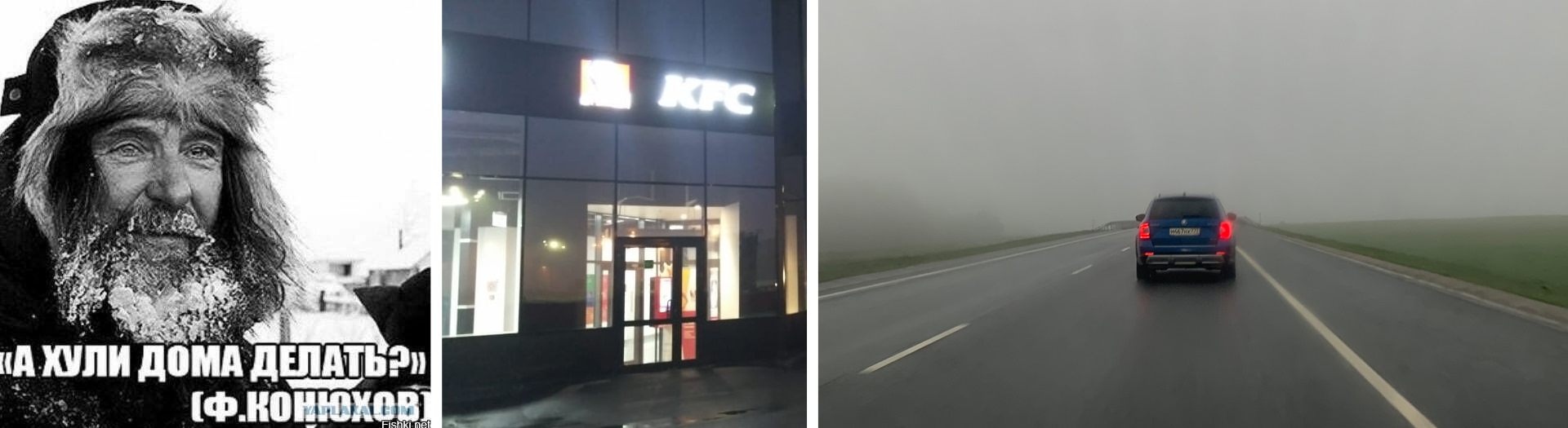 Итак, место встречи "пожрать" изменить нельзя, куриная закусочная имени полковника Андерсона, тьфу, Сандерсена. Компания на этот раз получилась забавной в виде двух сараев, одной тракторной колесницы с полугодовалым ребенком и безбашенного наездника на мотоцикле. 9 мая, 4 утра, льет как из ведра, ведь облака разгоняли, удачно списав 440 млн ради воздушного парада, которого, как оказалось, и не было. Наш отважный мотоциклист натягивает резиновые изделия, чтобы не промокнуть, и первым уходит в рассвет. Точнее, нет, в шторм. Следом уходит авто на тракторной тяге, наш же тандем уходит последним в путь, потому что покушать любим :)