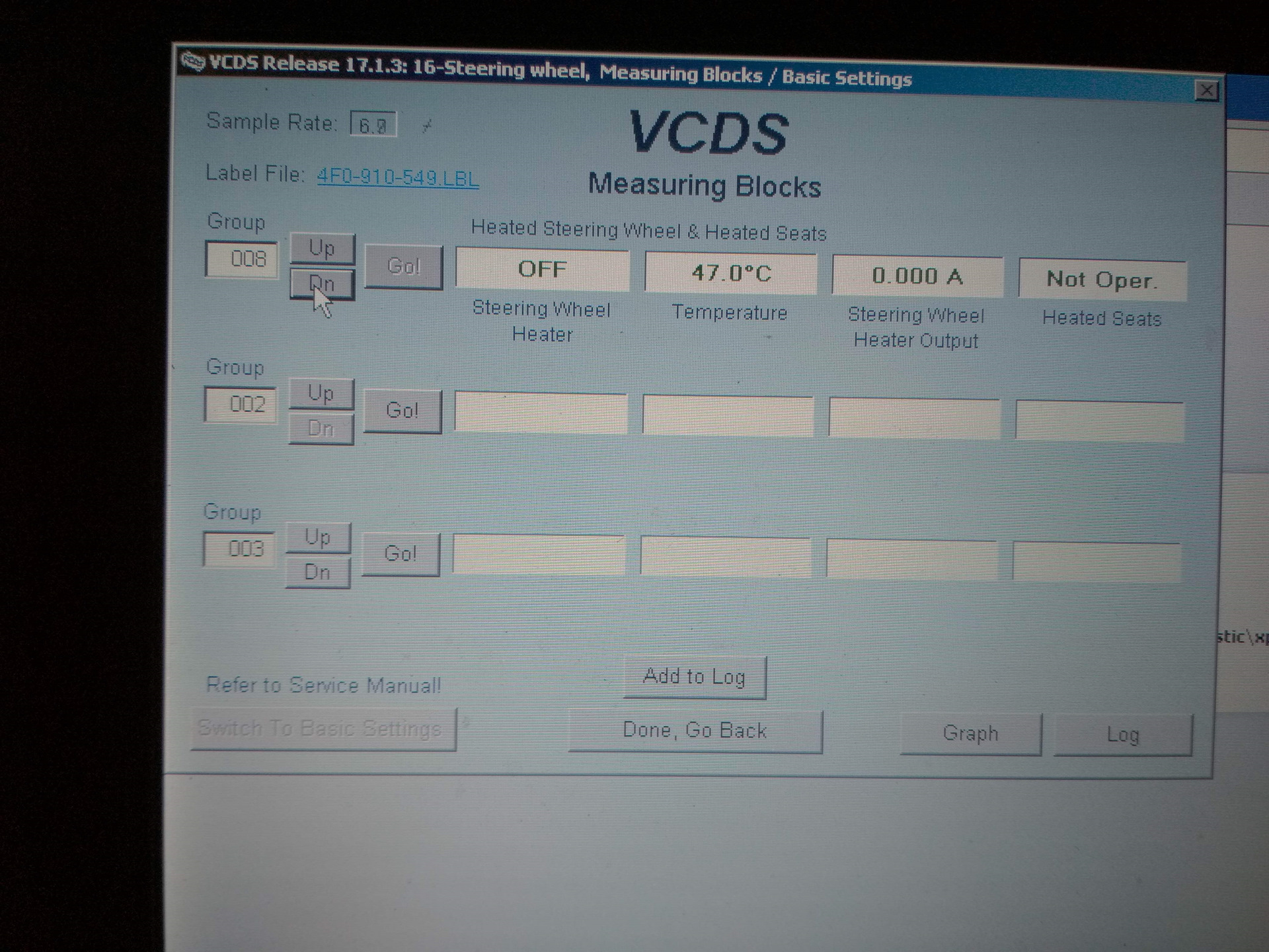 приветствую! только что поставили руль с подогревом, в группе 008 при включении кнопки пишет ОFF и температура не меняется 28-30, хотя индикация включения есть на приборке. А это точно что значение не меняется в группе 008 ОFF в зависимости от нажатия на кнопку. а ампераж интересно должен меняться?
