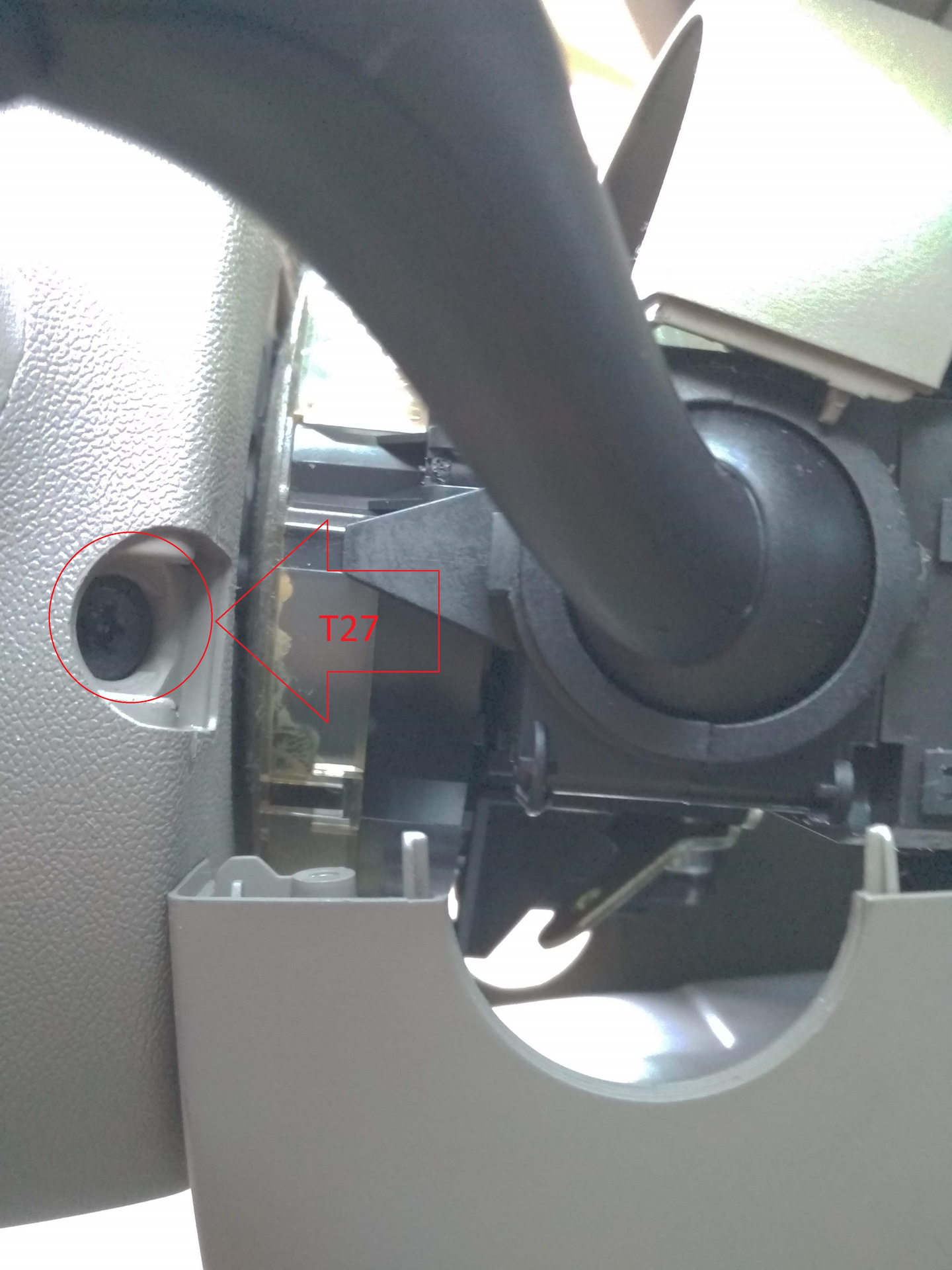 По бокам руля снимаем заглушки и откручиваем звездочкой Т27 крепления подушки.
