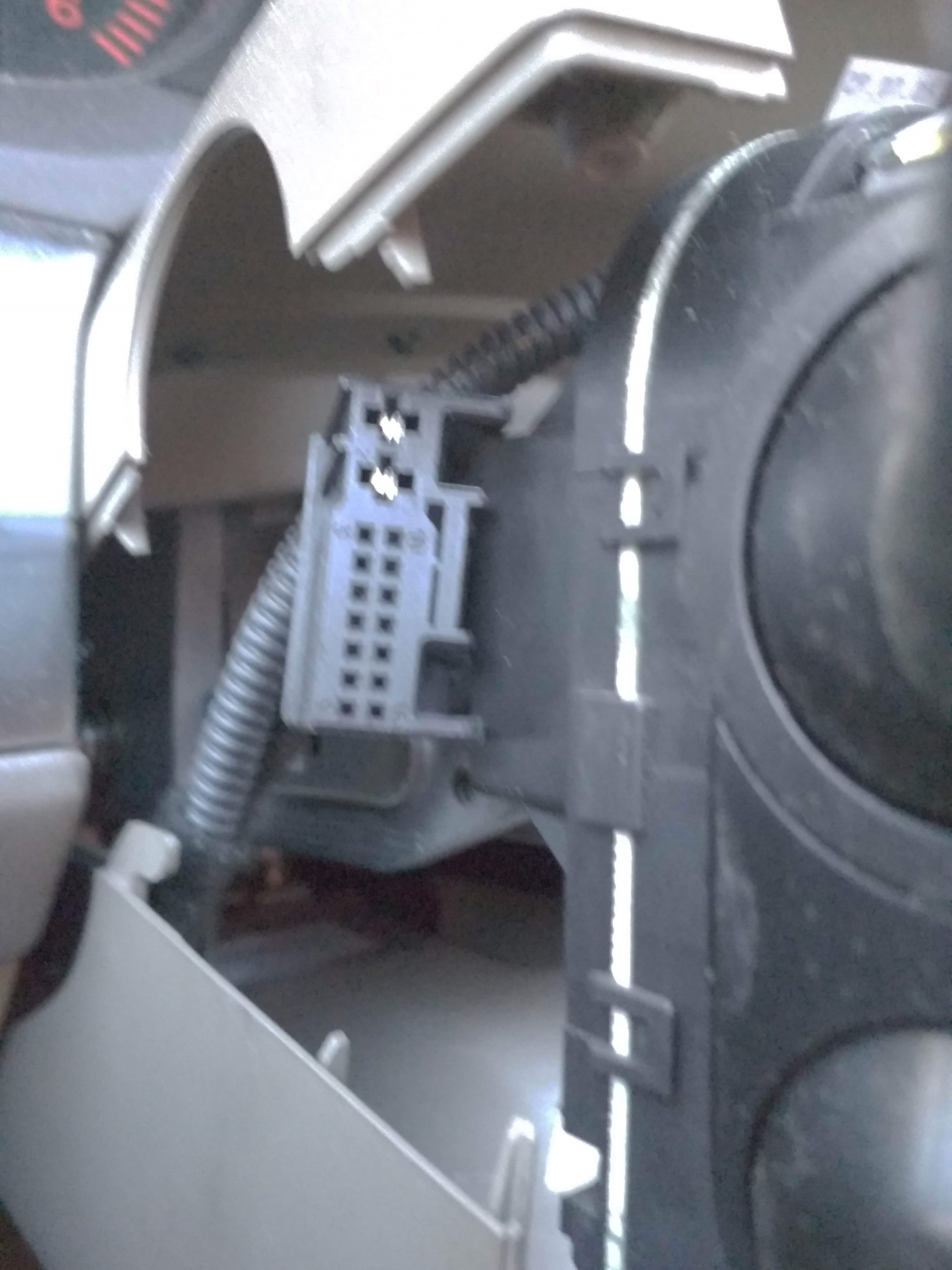 Так как в мыслях еще и установка дистроника и автосвета и … хрен его меня знает чего искал стрекозу в сборе, это вроде как и дешевле выходит. Но скажу я вам наличие дистроника еще не говорит о подогреве или наоборот, поэтому самый простой способ — это смотреть на разъем в кольце и искать там 2 штырька. Нету — подогрева нету. Есть штырки — подогревы есть.