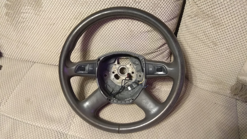 И тут мне попался руль с подогревом от а8 — цена гуманна 50$. Состояние неплохое, но сверху есть затертость, но главное что в родной коже, не крашен.